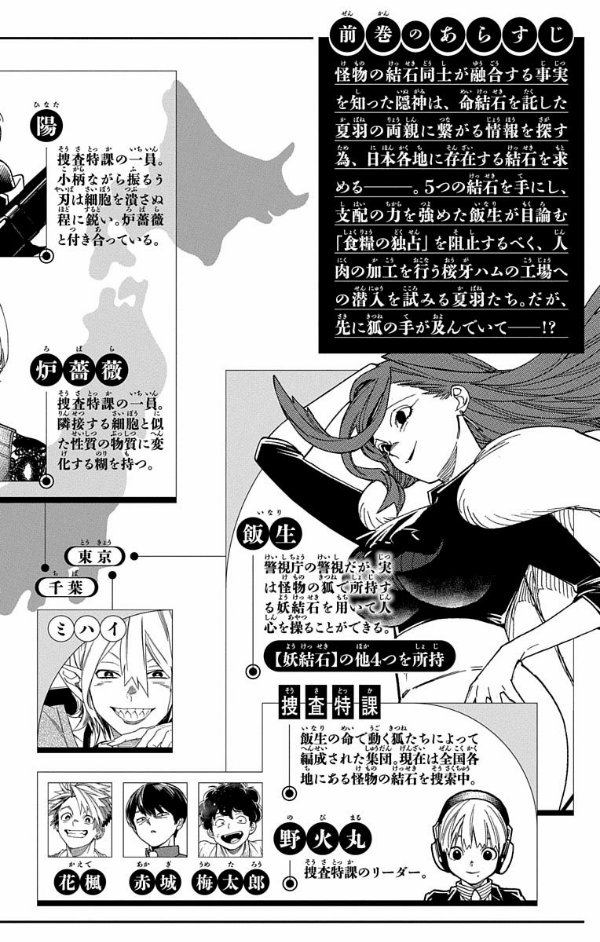 友人、家族、恋人…きっと誰しも大切な人がいることでしょう。それ故に、時として失わぬよう必死に戦うのでございます。桜牙ハムの工場内で、結石を巡って陽たちと対峙する夏羽と隠神は、連携して攻勢をかけるのですが、思わぬ者によって、隠神が人質に取られてしまうのでございます。さて、窮地の夏羽は果たして…。