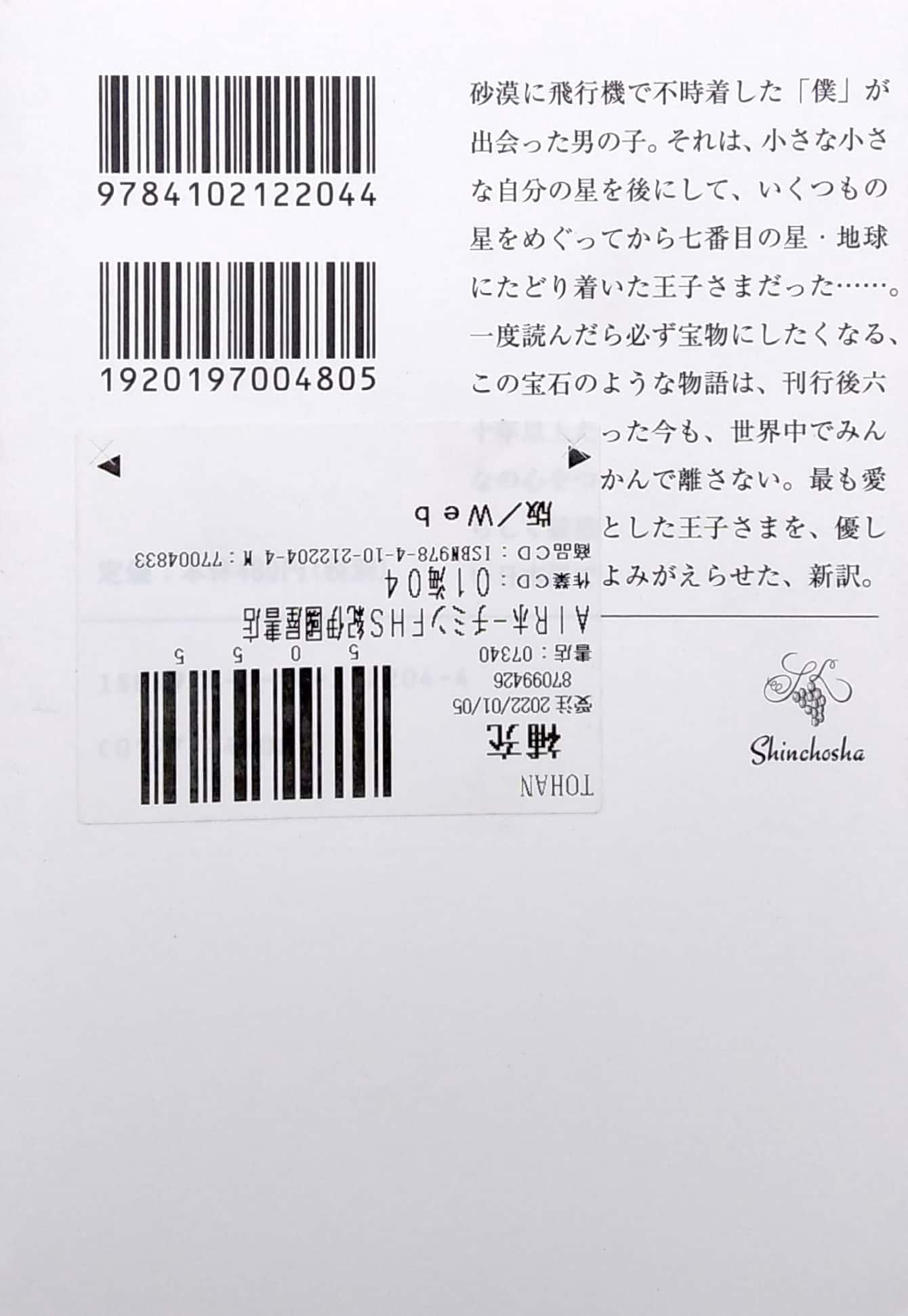 内容(「BOOK」データベースより) 砂漠に飛行機で不時着した「僕」が出会った男の子。それは、小さな小さな自分の星を後にして、いくつもの星をめぐってから七番目の星・地球にたどり着いた王子さまだった…。一度読んだら必ず宝物にしたくなる、この宝石のような物語は、刊行後六十年以上たった今も、世界中でみんなの心をつかんで離さない。最も愛らしく毅然とした王子さまを、優しい日本語でよみがえらせた、新訳。