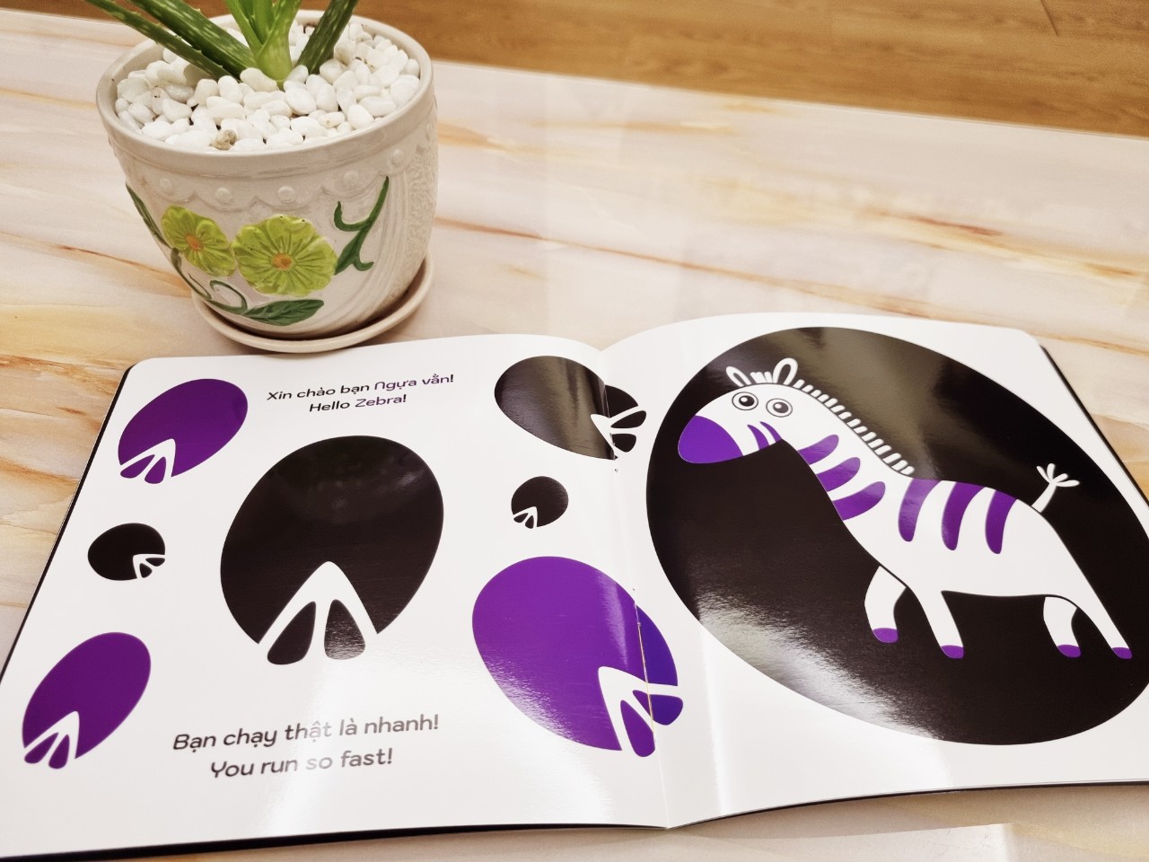 Bộ Ehon kích thích thị giác với 2 tông màu đen – trắng chủ đạo, kết hợp cùng với những sắc màu rực rỡ khác sẽ kích thích phát triển thị giác cho bé, đồng thời giúp bé phát triển nhận thức về thế giới xung quanh, mở rộng vốn từ tiếng Việt, nâng cao khả năng ghi nhớ vốn từ tiếng Anh.