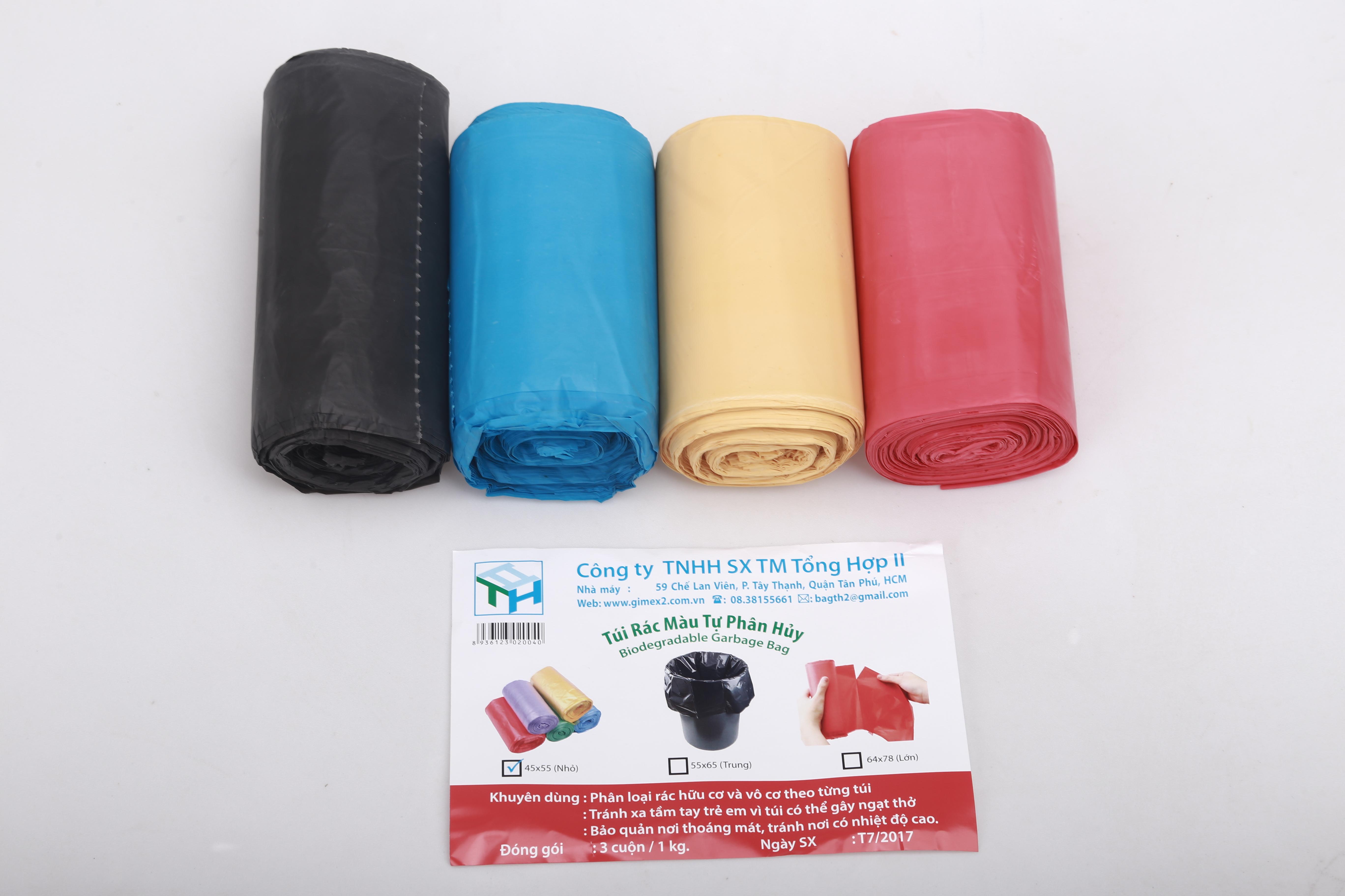 Bao đựng rác sinh học, Túi đựng rác tự phân huỷ, Bịch đựng rác thải gia đình * Thông tin sản phẩm: - Xuất xứ: Việt Nam - Size : + Trung : 55x65