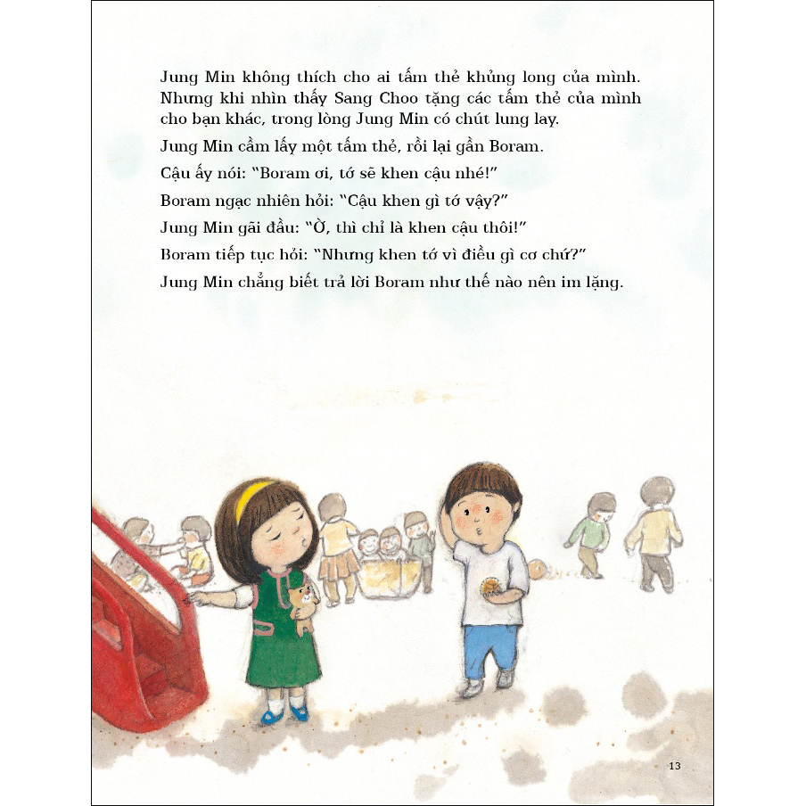 Nếu bé đang xếp hàng chờ tới lượt chơi xích đu mà lại phải nhường cho một em khác đang khóc nhè thì bé sẽ làm gì? Nếu em của bé muốn ăn luôn cả phần đồ ăn của bé thì bé có cho em mình không? Bé có sẵn sàng giúp bạn kể cả khi không được người lớn khen ngợi không? Cậu bạn Se Joon trong câu chuyện này luôn có cách giải quyết đấy.