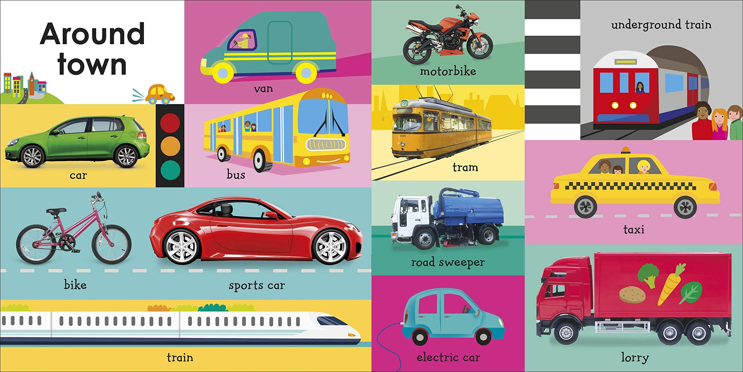A fun-filled first introduction to transportation Jump aboard and point to the busy vehicles in this things that go baby book. Filled with cars, trucks, planes, boats, tractors, and diggers, it helps little ones learn first words and build vocabulary. Favourite vehicles are labelled on every page, and the exciting photos combined with fun illustrations provide lots to talk about, learn about, and smile about, making this colourful picture book great for sharing, and an attractive baby gift. Part of a beautiful, first word book series, which includes the award-winning 100 First Words and 100 First Animals, the big board book pages are toddler tough, and cover everything from cool cars, terrific trucks, and awesome fire engines, to vehicle colours and kids' own ride-on toys. There are even some entertaining make-believe things that go, such as a fantastic pirate ship and a magic broomstick.