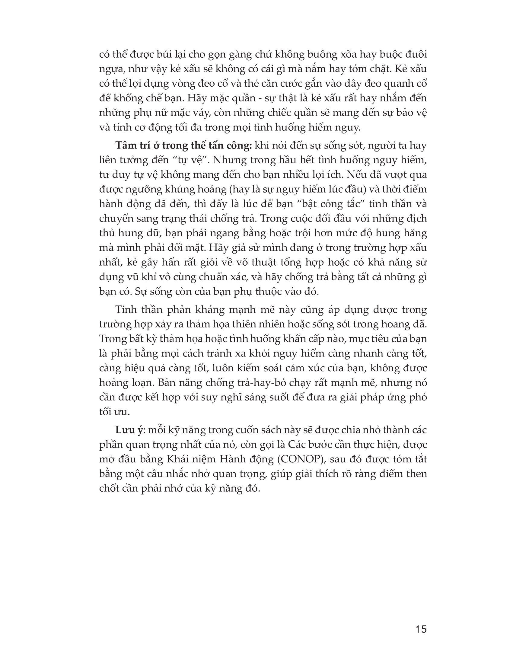 Những kỹ năng được giới thiệu trong cuốn sách “mang tính sống còn” vì một lí do. Nhiều trong số đó được lấy cảm hứng từ những nhiệm vụ và sự huấn luyện đặc biệt của những đặc vụ thường xuyên bị đẩy đến giới hạn của sức chịu đựng, sự chuẩn xác và tài xoay xở khéo léo trong những điều kiện hiểm nghèo đe dọa đến tính mạng. Một xã hội ngày càng được kết nối toàn cầu đòi hỏi sự chỉ dẫn mới để tồn tại.