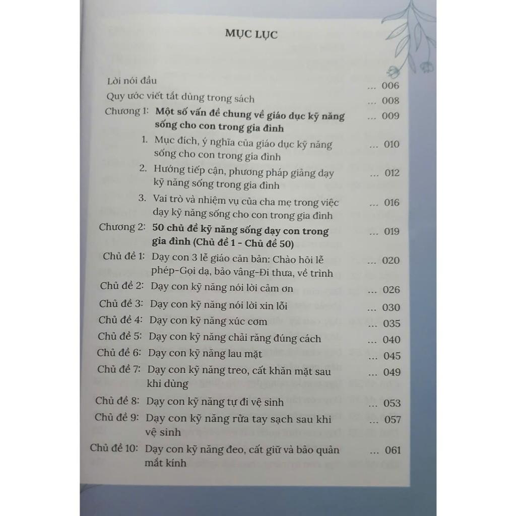 Tập 1 giới thiệu các vấn đề chung khi dạy kỹ năng sống cho trẻ tại gia đình và 50 kỹ năng đầu tiên ( từ chủ đề 1 đến kỹ năng 50 )
