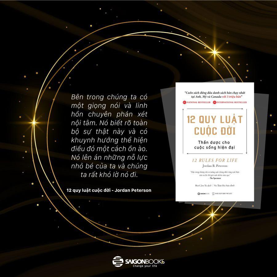 “Mỗi quy luật trong số 12 quy luật của quyển sách này – cùng các bài viết đi kèm với chúng – sẽ cung cấp một chỉ dẫn để đạt được nó.“Nơi ấy” chính là ranh giới thiêng liêng giữa trật tự và hỗn loạn. Đó là nơi đồng thời có sự ổn định, khám phá, biến đổi, khắc phục và hợp tác vừa đủ. Đó là nơi chúng ta tìm thấy ý nghĩa chứng minh cho cuộc sống và những khổ đau không thể tránh khỏi của nó. Có lẽ nếu sống đúng đắn, chúng ta sẽ chấp nhận được gánh nặng từ sự tự giác của mình. Có lẽ nếu sống đúng đắn, chúng ta sẽ giữ vững được hiểu biết về sự mong manh và tầm thường của con người, mà không cần phải đóng vai nạn nhân phiền muộn; để rồi sinh ra trước hết là sự oán hận, rồi đến ghen tuông, và sau đó nung nấu khát vọng trả thù và hủy diệt.” Tác giả Jor.dan B. Peterson nói về “12 quy luật cuộc đời”.