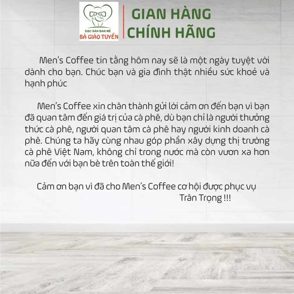 Men’s Coffee xin chân thành gửi lời cảm ơn đến bạn vì đã quan tâm đến giá trị của cà phê, dù bạn chỉ là người thưởng thức cà phê, người quan tâm cà phê hay người kinh doanh cà phê. Chúng ta hãy cùng nhau góp phần xây dựng thị trưtrờng cà phê Việt Nam không chỉ trong nước mà còn vươn xa hơn nữa đến với bạn bè trên toàn thế giới.
