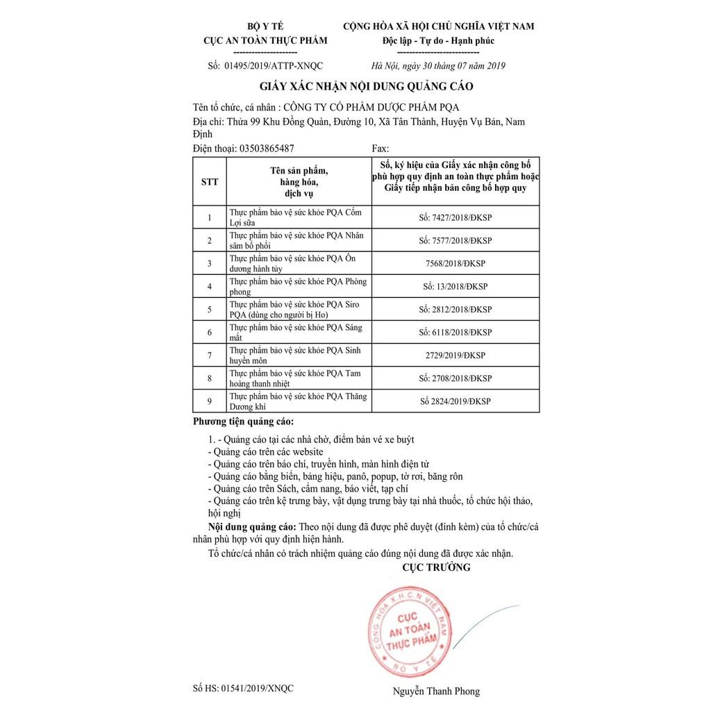 Cốm Lợi Sữa PQA hỗ trợ bổ khí huyết, tăng tiết sữa. Hỗ trợ giảm tắc tia sữa, ít sữa, mất sữa.