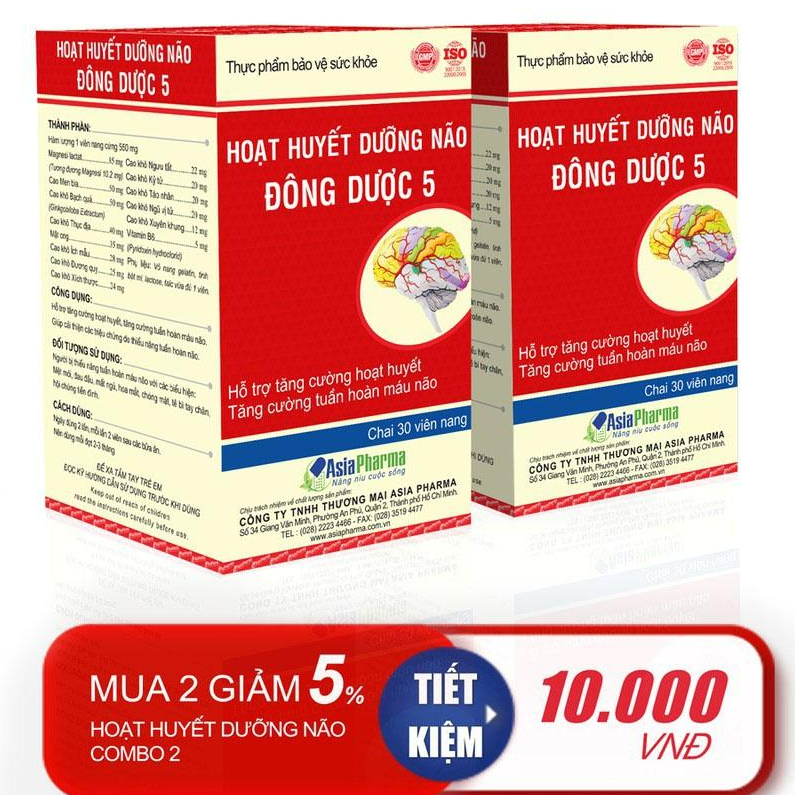 ✨[2 HỘP] Viên uống hoạt huyết dưỡng não Đông Dược 5 Asia Pharma hỗ trợ thiểu năng tuần hoàn não - Hộp 30 viên