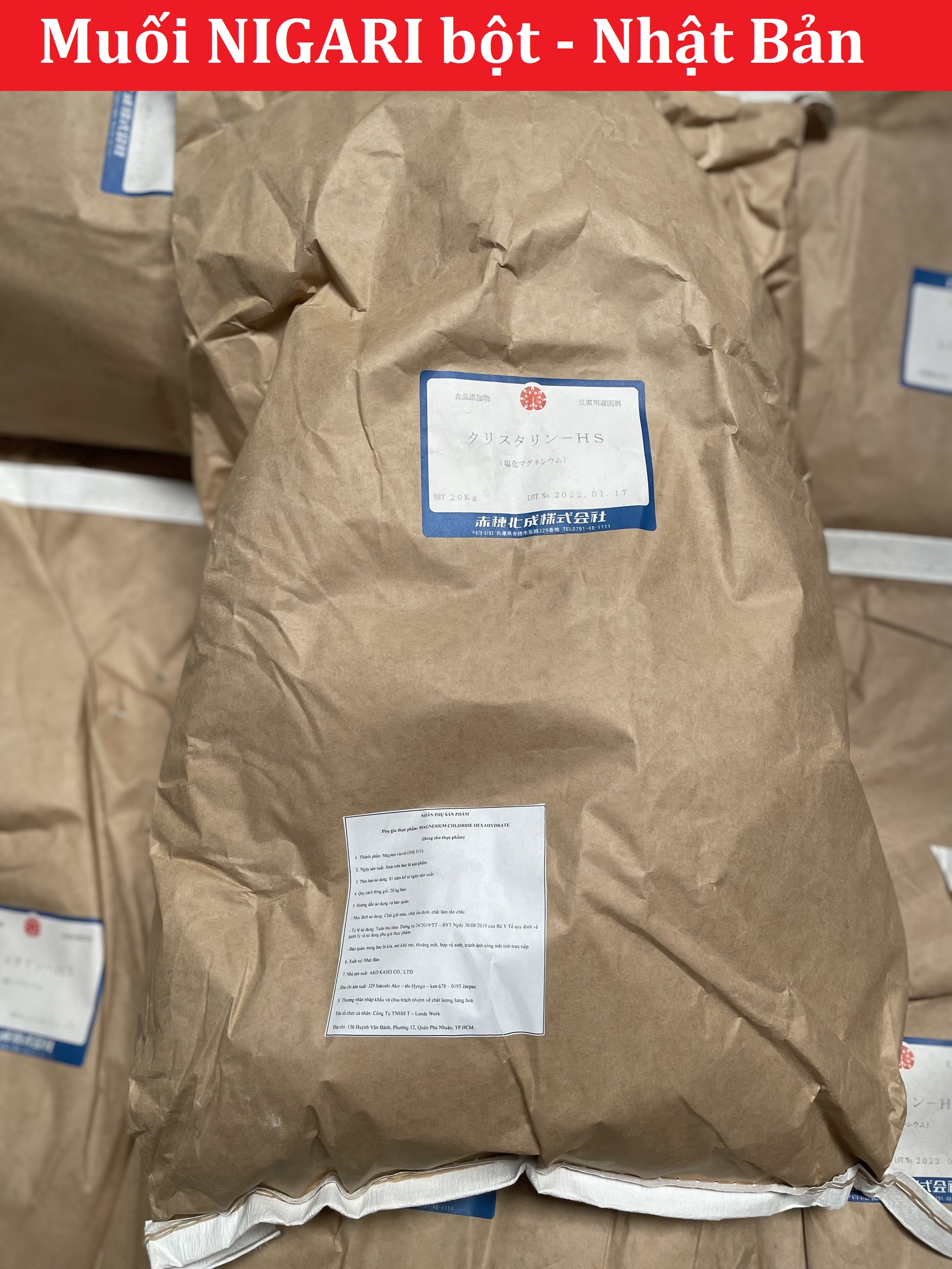 Thông tin về sản phẩm Tên thường gọi :Muối Nigari, muối Nhật, muối Nigari bột, muối làm đậu hũ Tên khoa học : MAGNESIUM CHLORIDE HEXAHYDRATE Thành phần : 100% Magnesi clorid (INS 511) Thành