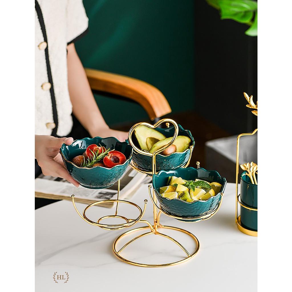 ✨3 Hũ Sứ Kẻ Vàng Kim Kèm Kệ Inox Vàng Gương | Kệ Decor chuyên đựng kẹo - hạt khô kèm hũ sứ sần cao cấp 2022