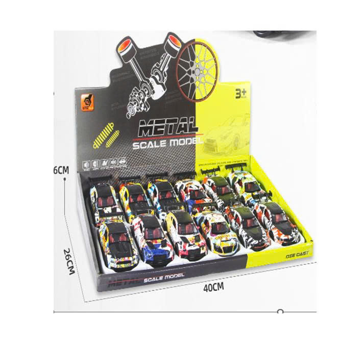 1087-8 – Mô hình ô tô sắt 12 xe/hộp (KT 7.3x2.7x2.5cm) Mô hình ô tô 1087-8 gồm 12 xe trong một hộp, với thiết kế mô phỏng nhiều kiểu dáng xe khác nhau. Kích thước