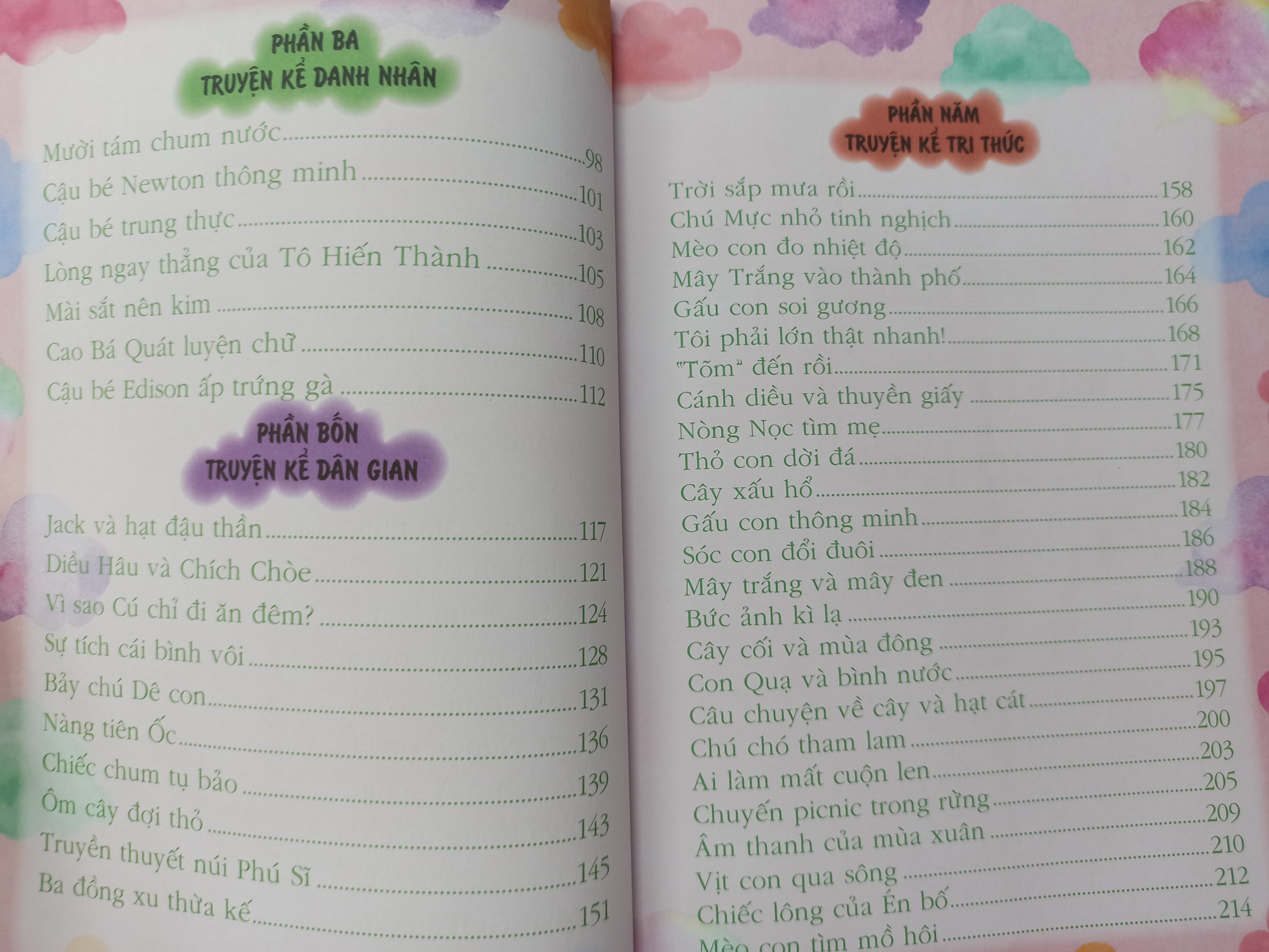 1.Những câu chuyện về bé trai 2. Những câu chuyện về bé gái 3. Những câu chuyện đẹp 4. những câu chuyện về các nàng công chúa 5. Những câu chuyện phép thuật thần chú