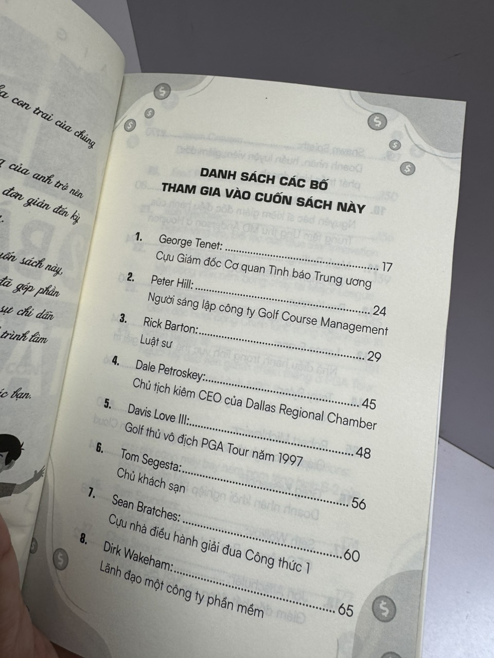 Cuốn sách “42 bài học tài chính cha gửi con” gồm những câu chuyện và lời khuyên ngoài đời thực được viết bởi 42 ông bố thuộc mọi tầng lớp xã hội – bao gồm: Các vận động viên chuyên nghiệp, nhân vật truyền hình, doanh nhân thành đạt, cựu quân nhân và những người bạn thân thiết khác của tác giả.