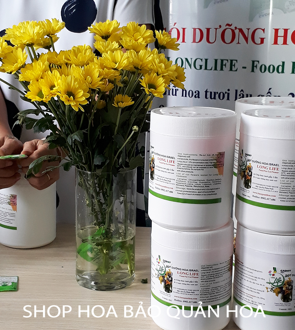 Bột Dưỡng Hoa Longlife SG dành cho Shop Hoa, Chợ hoa bảo quản hoa cắm lẵng tươi lâu và hạn chế thay hoa định kỳ có thời từ 2 – 3 năm nên Quý Khách yên tâm, có thể mua nhiều để dùng tiết kiệm hơn