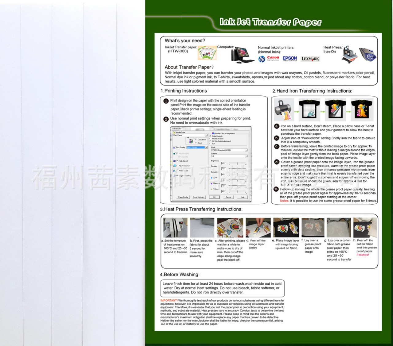 1, Giấy in chuyển nhiệt đặc biệt HTW 300 - dark inkjet transfer paper H dùng cho các chất liệu tối màu