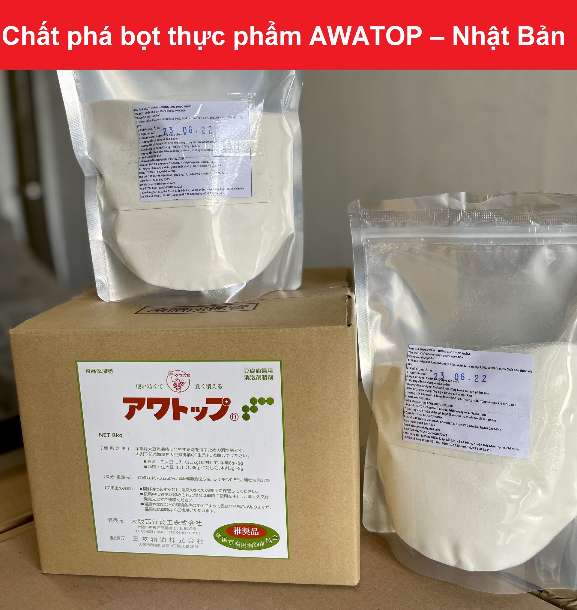 500g AWATOP Nhật Bản phụ gia thực phẩm phá bọt sữa đậu nành tăng độ béo. Thông tin về sản phẩm: Tên thường gọi : Chất phá bọt, chất nhũ hoá, AWATOP Nhật, phụ gia