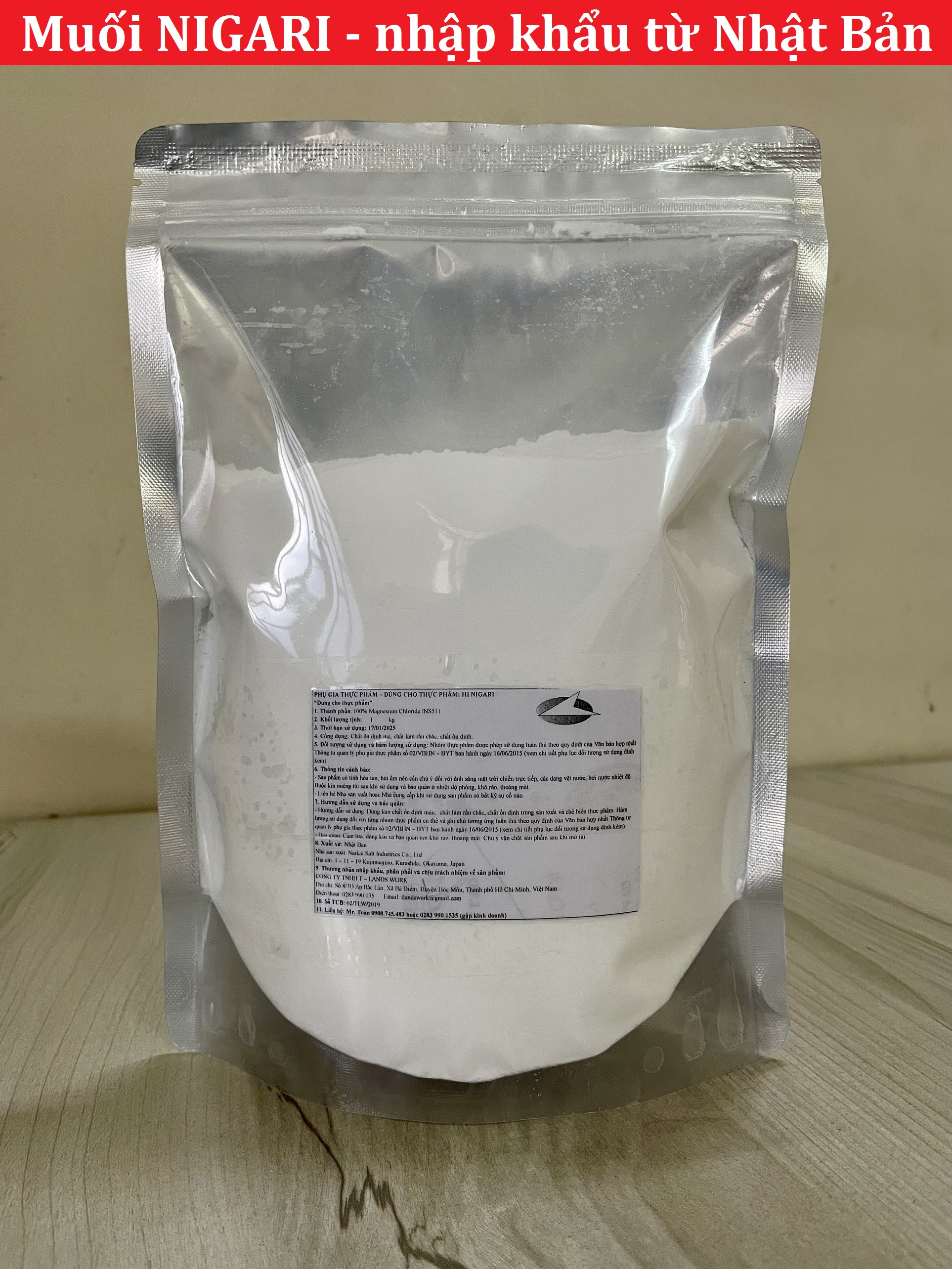 Thông tin về sản phẩmTên thường gọi:Muối Nigari, muối Nhật, muối Nigari bột, muối làm đậu hũTên khoa học: MAGNESIUM CHLORIDE HEXAHYDRATEThành phần: 100% Magnesi clorid (INS 511)Thành p...