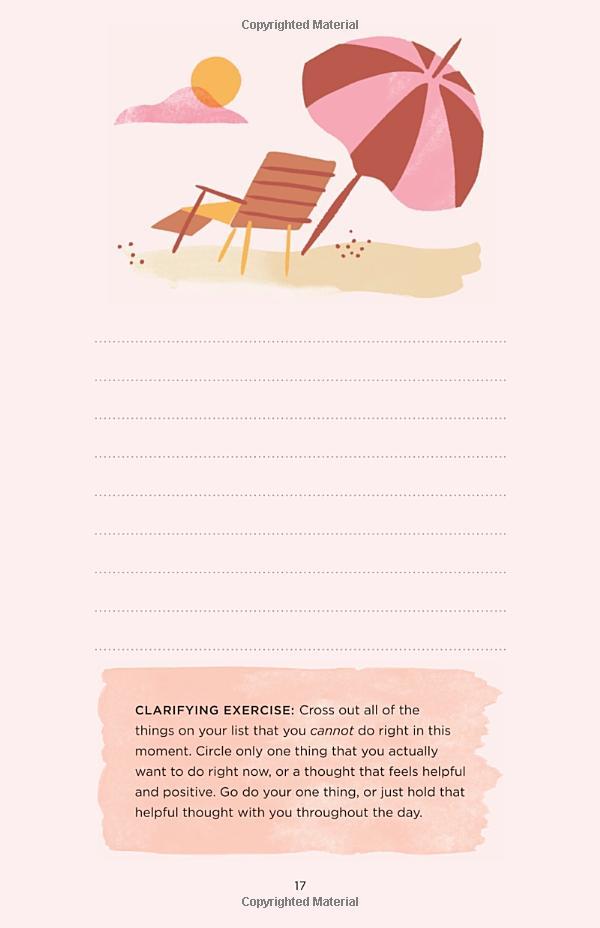 Develop peace of mind and serenity through the calming practice of list-making. Create 52 lists, one for each week of the year, in this lovely undated hardback journal, and along the way, develop a personalized tool kit at the back of the book as a quick reference with strategies to turn to for relief. Includes 52 listing prompts divided into 4 sections: Be Present, Look Back, Move Forward, and Release, plus tips and strategies for mindfulness and relaxation, thought-provoking quotes, short inspiring essays, soothing photography and illustrations, metallic-foil accents, and a ribbon. Those suffering from anxiety, tension, and burnout will find the journal particularly helpful, although anyone can benefit.