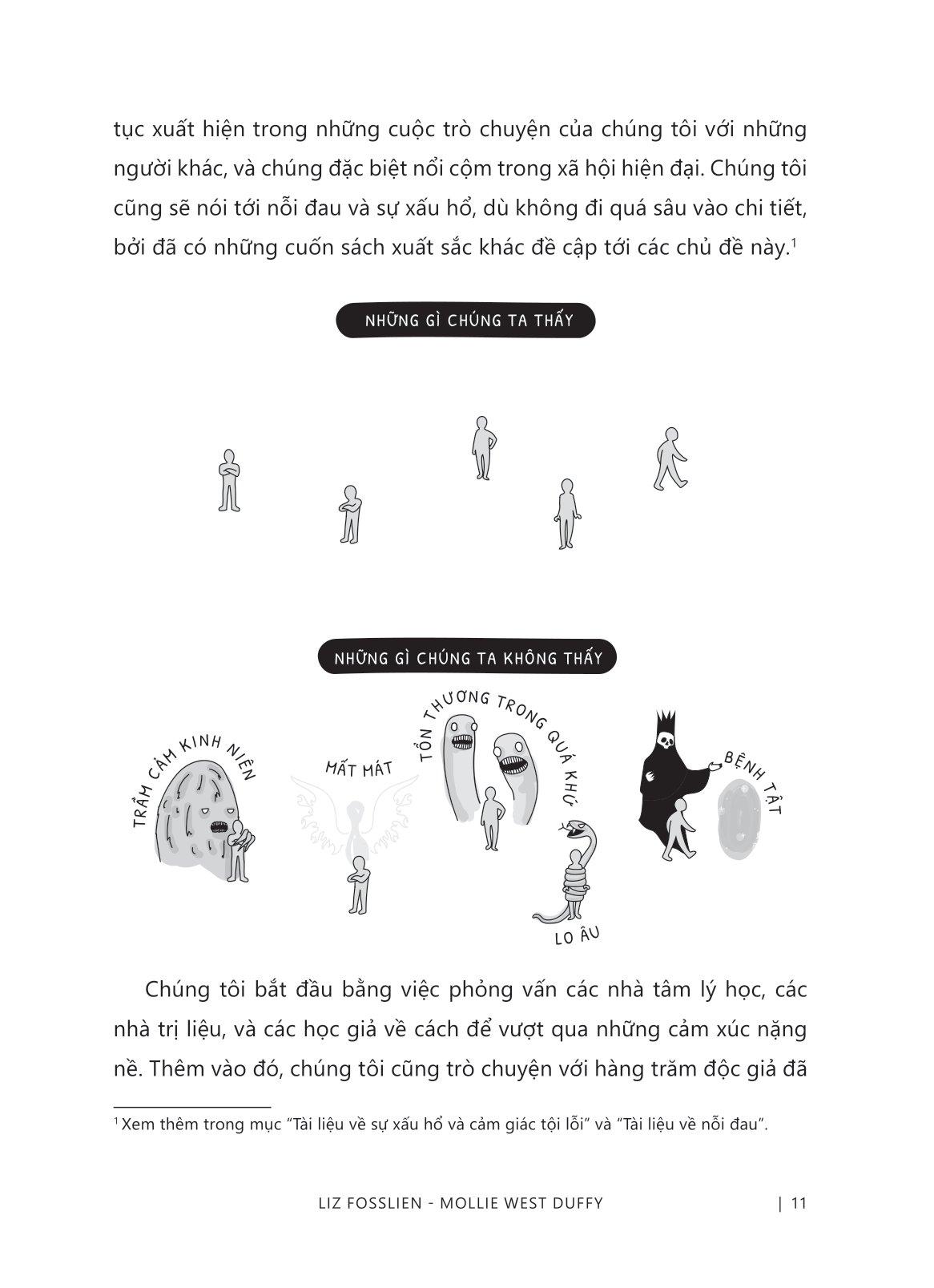 Bất định, So sánh, Giận dữ, Kiệt sức, Cầu toàn, Tuyệt vọng, Hối tiếc là những cảm xúc "lớn" đối với mỗi con người, tưởng như chỉ đem lại đau khổ, nhưng lại có ý nghĩa to lớn trong quá trình chữa lành và phục hồi của bạn. Nuối tiếc những ngã rẽ đã không bước qua trong đời sẽ giúp bạn đưa ra lựa chọn thấu đáo. Sự đố kỵ sẽ giúp bạn thấu suốt về những điều m.ình coi trọng. Thậm chí, khi ánh sáng dường như bị dập tắt, bóng tối cũng có thể giúp bạn mài giũa ý thức về bản thân và thấu cảm với những người xung quanh.