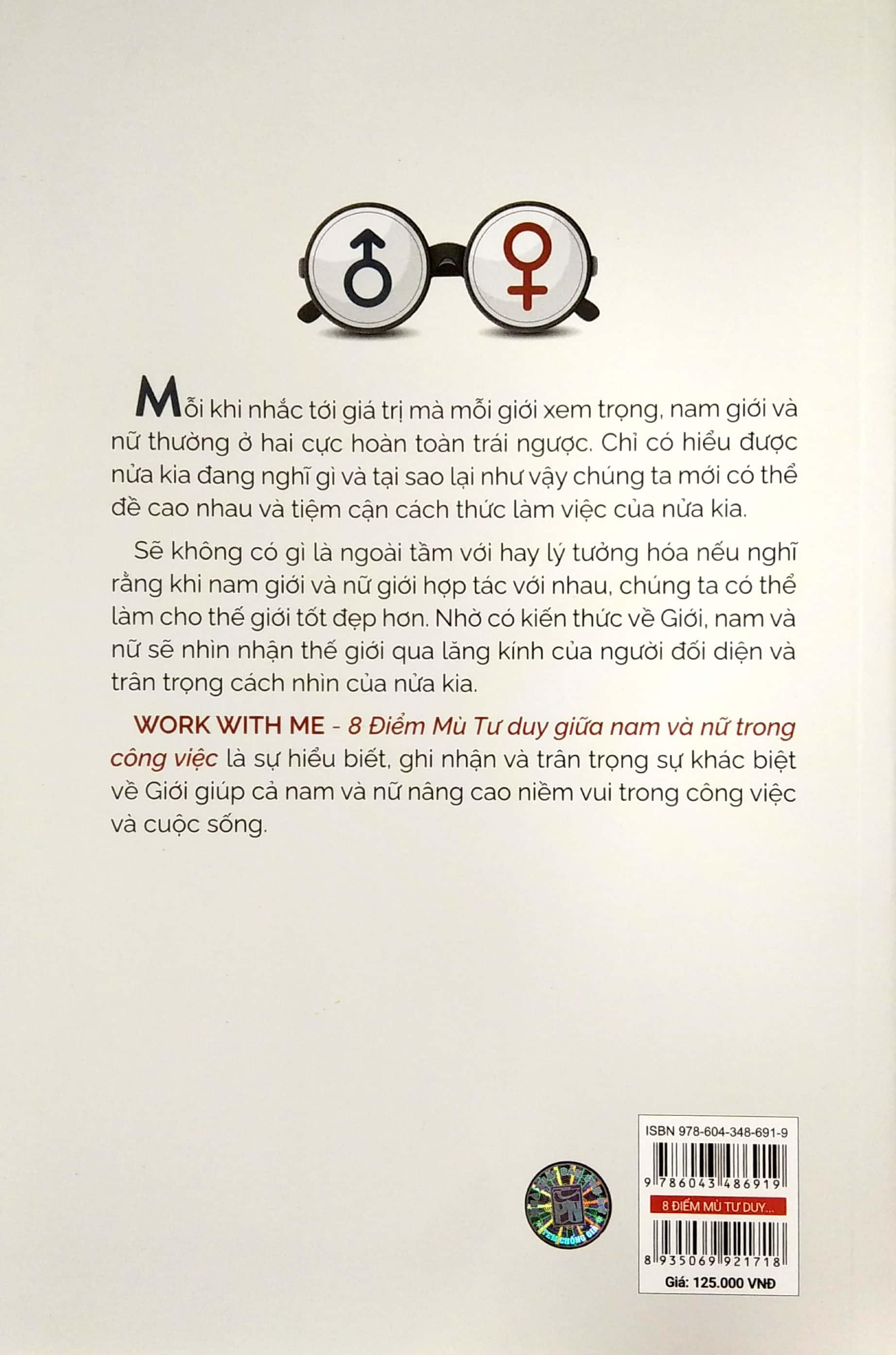 WORK WITH ME - 8 Điểm Mù Tư duy giữa nam và nữ trong công việc là cuốn sách khám phá về Giới, một chủ đề khá mới trong xã hội hiện đại. Từ lâu, trong các mối quan hệ giữa đàn ông và phụ nữ luôn có những điểm khác biệt dẫn đến những sự phân công lao động khác nhau cũng như những “định kiến Giới” khiến mỗi giới không phát huy hết được những tiềm năng và thế mạnh của bản thân mình. Từ đó tạo nên những khoảng cách và quan niệm bất bình đẳng, đặc biệt trong công việc. Nhiều người cảm thấy bế tắc, chán chường, muốn bỏ cuộc vì họ không thể hòa hợp được với người khác giới trong công việc. Nam và nữ đều mong muốn hiểu được nửa kia. Tuy nhiên họ không biết cách truyền đạt thông tin một cách thuyết phục, không biết cách lắng nghe, không biết cách phối hợp hiệu quả trong công việc. Cuốn sách này sẽ giúp bạn giải quyết những vấn đề trên. WORK WITH ME - 8 Điểm Mù Tư duy giữa nam và nữ trong công việc đưa ra những cuộc khảo sát với dữ liệu khổng lồ mà chưa có một nghiên cứu hay báo cáo nào có thể sánh kịp với 100.000 cuộc phỏng vấn sâu về các giám đốc điều hành cả giới nam và nữ trong hơn 60 công ty Fortune 500, mục đích là để xem xét thái độ làm việc của nam và nữ trong công việc. Dựa trên những số liệu đã thống kê, Gray và Annis đã đưa ra 8 điểm mù về Giới. Hành trình khám phá 8 điểm mù về Giới là hành trình trả lời những câu hỏi được đặt ra ở tựa đề mỗi chương như: Đàn ông có xem trọng phụ nữ? Đàn ông có thực sự vô cảm? Đàn ông có thực sự lắng nghe? Phụ nữ có quá dễ xúc động? Phụ nữ có mong muốn đàn ông thay đổi? Đàn ông có cần coi phụ nữ như “trứng mỏng”? Những câu hỏi này sẽ tiết lộ những điểm mù về Giới và qua đó chia sẻ những cách thức để nam và nữ làm việc với nhau hiệu quả. Cuốn sách này sẽ giúp đàn ông biết cách gây dựng niềm tin với phụ nữ và ngược lại, phụ nữ sẽ biết cách chiếm lấy sự tín nhiệm của đàn ông. Nam và nữ giới sẽ biết cân bằng giữa công việc và cuộc sống, đồng thời giảm bớt áp lực trong công việc. Mặc dù cuốn sách này tập trung chính là nơi làm việc nhưng cũng có một vài ví dụ hữu ích áp dụng cho lĩnh vực khác trong cuộc sống cá nhân như các mối quan hệ khác và cuộc sống gia đình. WORK WITH ME - 8 Điểm Mù Tư duy giữa nam và nữ trong công việc không phải là cuốn từ điển bách khoa dạy bạn cách xử lý mọi tình huống mà nó là một cuốn sách kỹ năng giúp bạn nâng cao nhận thức và hiểu biết của bản thân để có thể hòa hợp được với người khác phái. WORK WITH ME - 8 Điểm Mù Tư duy giữa nam và nữ trong công việc sẽ giúp bạn hiểu được tư duy của người khác giới. Bạn sẽ học được cách đặt mình vào vị trí của người khác phái, cách để thực sự lắng nghe, truyền đạt thông tin và hợp tác hiệu quả. Từ hiểu rõ hơn về người khác phái, bạn sẽ biết cách trân trọng họ hơn và nhận ra rằng sự khác biệt về Giới chính là bổ trợ tuyệt vời cho cả hai giới. Cuốn sách với lời văn lôi cuốn, dễ tiếp cận và một chủ đề mới mẻ, hấp dẫn đem lại nhiều ấn tượng và giá trị. Gray và Annis đã có một cái nhìn khách quan, công bằng với các ví dụ, lập luận chặt chẽ về một chủ đề nhạy cảm, qua đó giúp chúng ta hiểu được tư duy của người khác phái để tránh hiểu lầm và bị hiểu lầm. Cuốn sách vô cùng giá trị cho những người đang đi làm và đặc biệt là người làm lãnh đạo. Tác giả: Barbara Annis – John Gray Barbara Annis Barbara Annis, Giám đốc điều hành của Gender Intelligence Group (GIG) là một chuyên gia nổi tiếng thế giới về Giới, Đa dạng và Lãnh đạo, bà đã đổi mới phương thức lãnh đạo trong các tổ chức trên toàn thế giới. Bà đã có cái nhìn sâu sắc và thành tựu của bà đã tiên phong cho sự thay đổi tư duy giữa nam giới và phụ nữ trên toàn cầu. Barbara Annis là chủ tịch và là thành viên của Hội đồng Lãnh đạo Phụ nữ tại Trường Harvard Kennedy. Bà là tác giả của 5 cuốn sách bán chạy trong đó có cuốn WORK WITH ME - 8 Điểm Mù Tư duy giữa nam và nữ trong công việc. John Gray John Gray là một cố vấn, giảng viên và tác giả người Mỹ. Ông đã nhận bằng cử nhân và thạc sĩ về Khoa học Trí tuệ Sáng tạo. Tiến sĩ John Gray là một chuyên gia được công nhận trên trường quốc tế trong lĩnh vực giao tiếp và các mối quan hệ; là tác giả của 12 cuốn sách bán chạy nhất, trong đó có cuốn WORK WITH ME - 8 Điểm Mù Tư duy giữa nam và nữ trong công việc. Ông là một bác sĩ tâm lý trong lĩnh vực gia đình, một biên tập viên chuyên tư vấn của Tạp chí gia đình; thành viên Ban Tư vấn Xuất sắc thuộc Hiệp Hội Quốc tế về Hôn nhân và Gia đình và là thành viên của Hiệp hội các nhà tư vấn Mỹ. Mr. John hiện đang sống và làm việc cùng vợ và ba con tại phía Bắc của California. LỜI MỞ ĐẦU BẠN ĐÃ BAO GIỜ CẢM NHẬN HAY NGHE TH