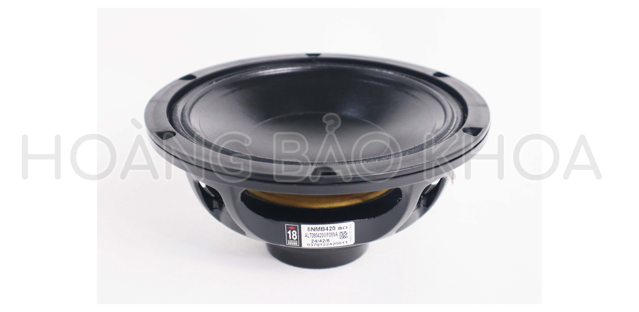 từ neodymium 8NMB420 đã được phát triển để đáp ứng yêu cầu cụ thể của thị trường về  midbass 8" kết hợp tính tuyến tính tuyệt vời với hiệu suất tốt và khả năng xử lý công suất cao. 8NMB420 chủ yếu được thiết kế để sử dụng như một củ midbass trong các thùng phản xạ 2 chiều hoặc đa chiều nhỏ gọn bao gồm các mảng dòng. Các thông số đã được chọn để cung cấp đầu ra tần số thấp đáng kể trong vỏ bọc thông gió với kích thước bắt đầu từ 20 lit, với tần số điều chỉnh khoảng 60Hz. Bộ lọc từ thông thấp có thể được đặt ở vị trí cao đến 2000-2500Hz. Có thể sử dụng nhiều đơn vị 8NMB420: kích thước nhỏ gọn phản ánh khả năng có thời gian tấn công chính xác. Đặc tính này làm cho nó trở thành sự lựa chọn lý tưởng cho việc giám sát sân khấu và khuếch đại guitar bass. Cụm nam châm neodymium bên ngoài cực kỳ mạnh mẽ đảm bảo nồng độ từ thông lượng cao, nén công suất thấp và trao đổi nhiệt tuyệt vời. Các cấp độ của hệ số lực và xử lý lực, do đó, ở cấp độ chuyên nghiệp cao hơn với tỷ lệ sức mạnh trên trọng lượng tốt nhất. Thiết kế vòm cuộn kép chuyên dụng độc quyền cung cấp khả năng điều khiển và di chuyển tuyến tính nâng cao, để tái tạo tần số thấp chính xác. Nón giấy cong được hình thành bằng cách sử dụng thành phần bột gỗ độc đáo được thiết kế để đạt được độ cứng và độ cứng tốt nhất có thể. Cuộn dây  bằng nhôm bên trong 50mm sử dụng công nghệ cuộn dây Sandwich xen kẽ (ISV). Nó được cấu tạo bởi một sợi thủy tinh có độ bền cao trước đây được sử dụng để mang các cuộn dây ở cả bề mặt bên ngoài và bên trong để đạt được một cuộn dây cân bằng khối lượng. Điều này dẫn đến việc lắp ráp động cơ cực kỳ tuyến tính, kết hợp với thiết kế tiên tiến cao của cấu trúc từ tính, cung cấp hệ số lực cao hoặc BL. Cuộn dây được làm mát kết hợp các đường dẫn khí giữa tấm sau khung máy và tấm mặt nam châm để không khí nóng được dẫn ra khỏi cuộn dây và khe hở và tản ra bởi giỏ khung. Nhờ việc sử dụng ngày càng nhiều trong các sự kiện âm thanh ngoài trời, khả năng trình diễn trong môi trường ẩm ướt là đặc điểm chính của 8NMB420. Điều này đạt được nhờ xử lý nón loa chống ẩm độc quyền mà không làm tăng khối lượng loa di chuyển.