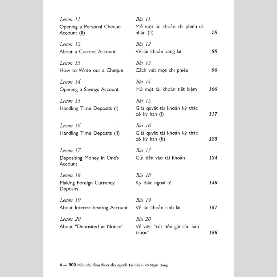 Mua tại TiktokCuốn sách 900 Mẫu Câu Đàm Thoại Trong Ngành Tài Chính Và Ngân Hàng gồm những nội dung chính như sau: