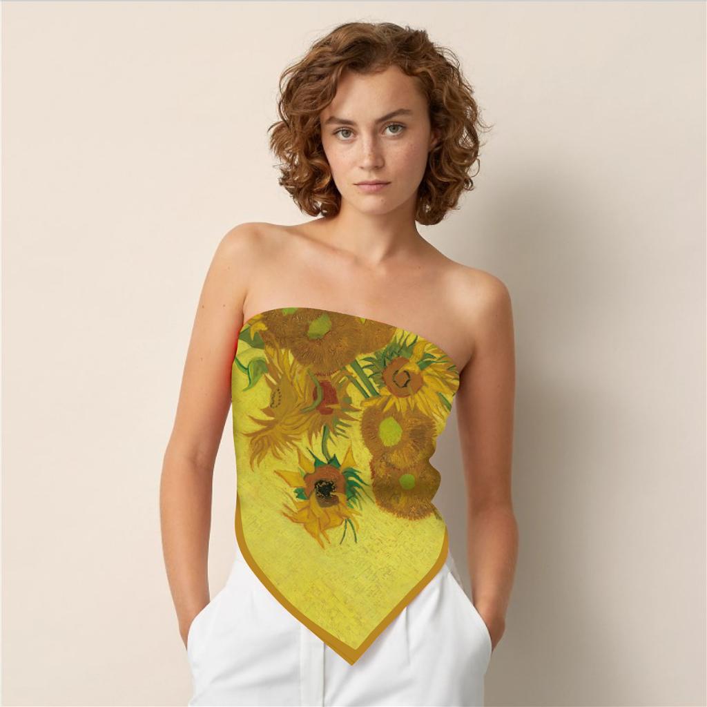 ✨90x90cmKhăn bandana lụa quấn áo BlackPink - Khăn quàng cổ lụa vuông họa tiết tranh cổ điển Picaso