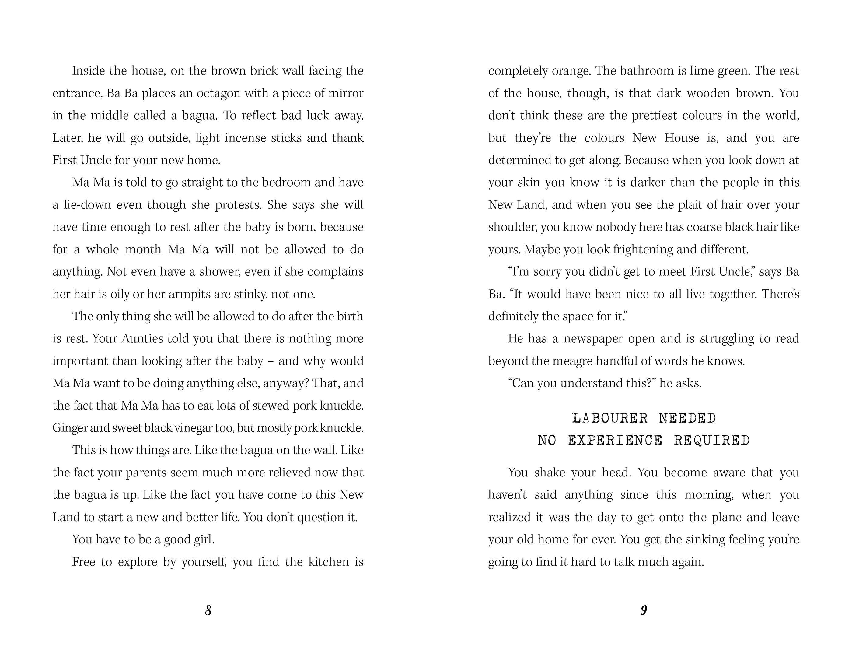 Meixing Lim and her family have arrived in the New Land to begin a New Life. Everything is scary and different. Their ever-changing house is confusing and she finds it hard to understand the other children at school. Yet in her magical glasshouse, with a strange black-and-white cat, Meixing finds a place to dream.