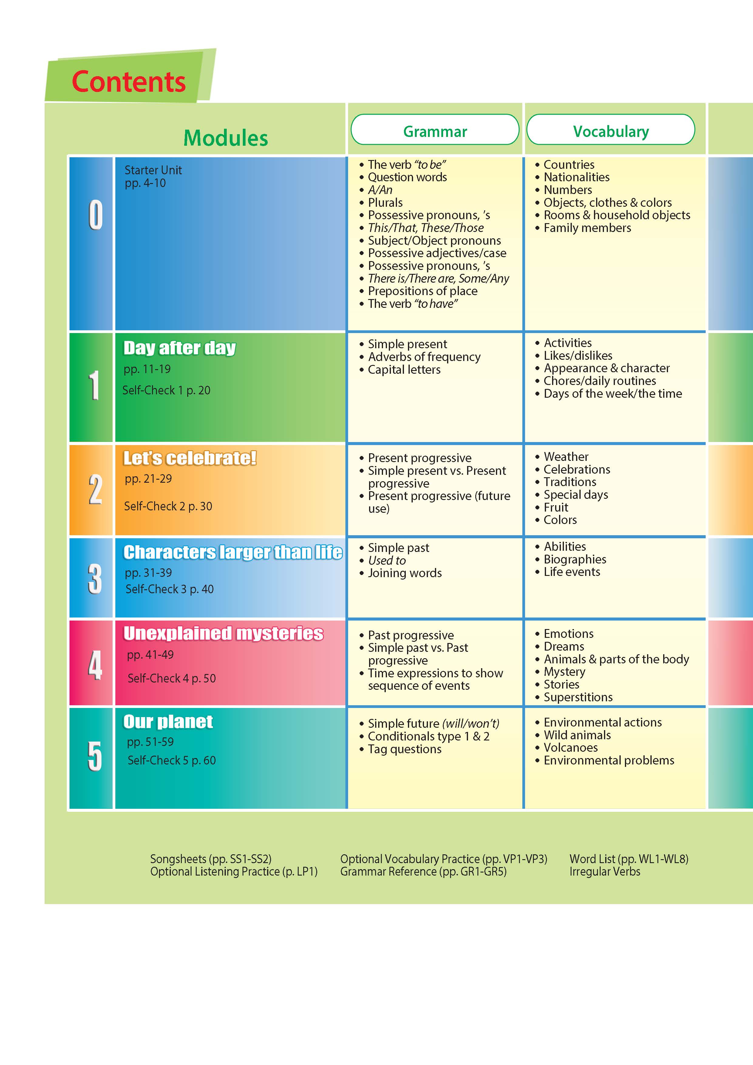 American Grammar Goals: Student's Book Pack Level 1 The American Grammar Goals Student's Book Packs include a Student's Book and a CD-ROM. The Student's Book has 10 units per level plus a two-page exam practice