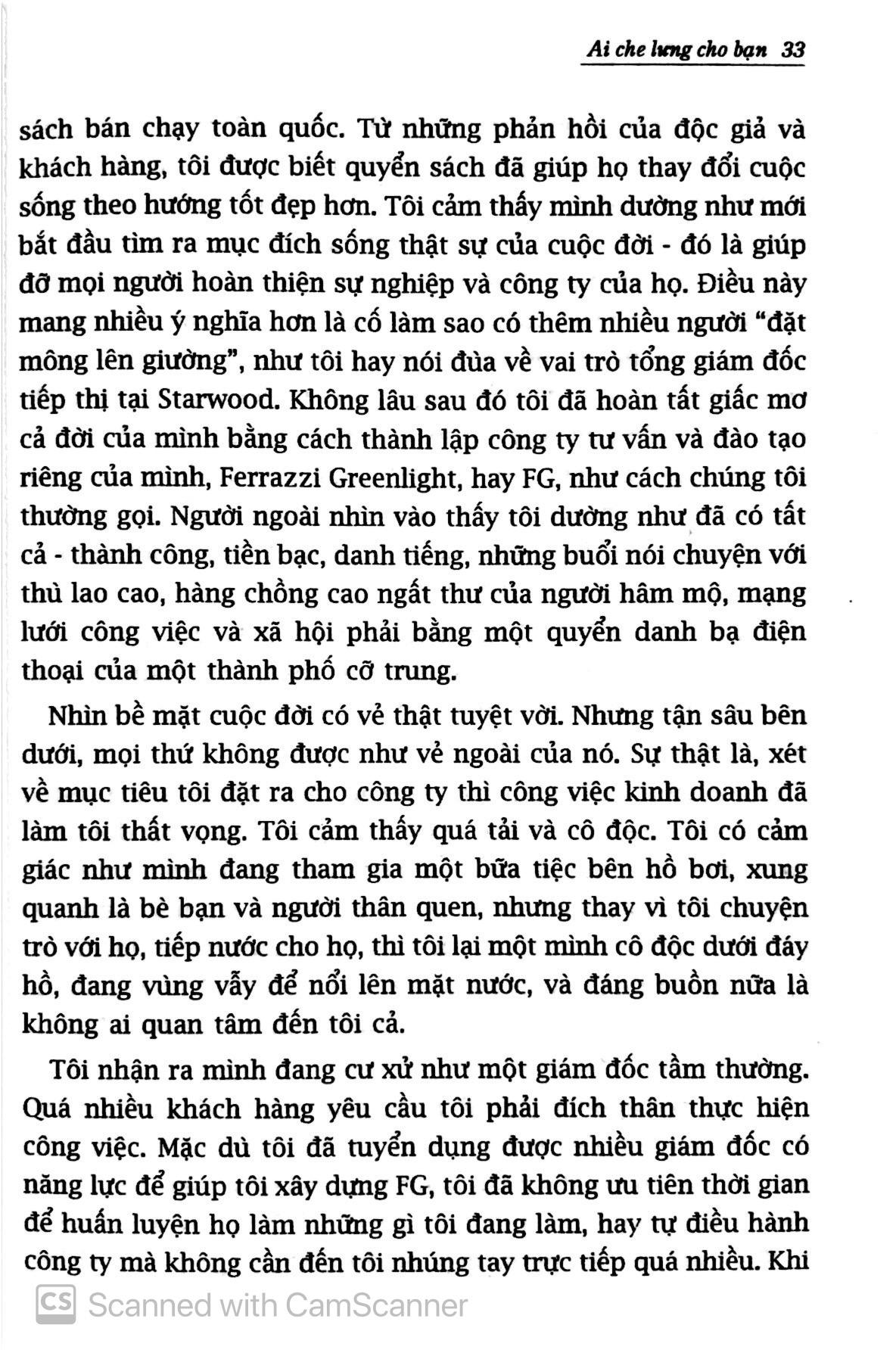 Ai Che Lưng Cho Bạn Thành công không chỉ là thành quả của sự thông minh và cũng không chỉ xuất phát từ bản thân con người bạn, mà nó phụ thuộc rất nhiều vào những mối quan hệ khác quanh bạn. Làm sao để nhận biết và xây dựng mối quan hệ với những người có thể luôn sát cánh bên bạn những lúc bạn cần, vào những thời điểm bạn muốn? AI CHE LƯNG CHO BẠN của đồng tác giả ĐỪNG BAO GIỜ ĐI ĂN MỘT MÌNH, là cuốn sách đầu tiên nhất chuyển tải thông điệp “hãy để người khác giúp bạn” tập hợp những phương thức thay đổi hành vi thành công nhất trên thế giới giúp bạn xây dựng nhanh chóng các mối quan hệ cần thiết tạo nên sự khác biệt để đạt được thành công trong công việc kinh doanh cũng như trong cuộc sống.