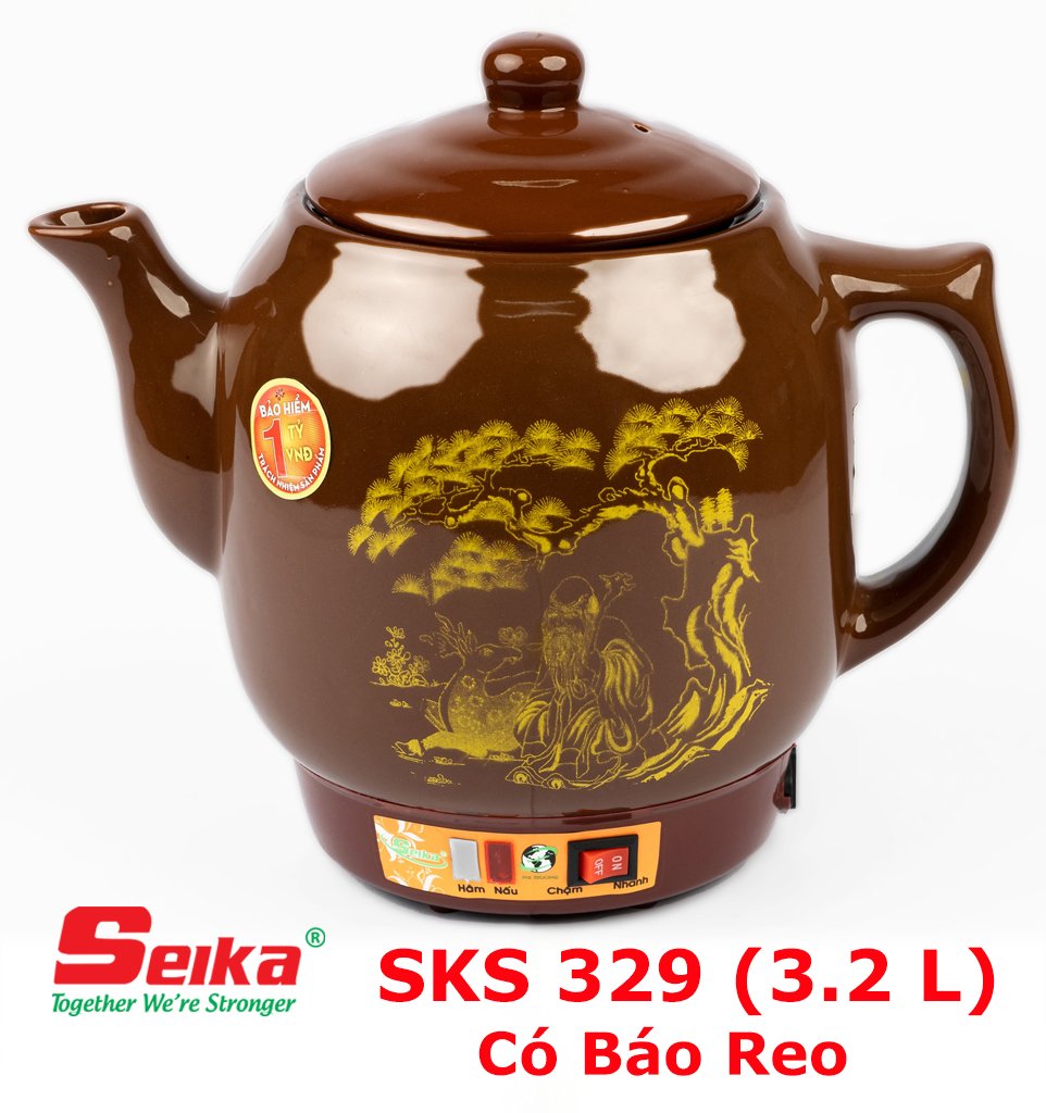 Ấm Sắc Thuốc Seika 3.2L - SKS329 (Gốm Sứ Bát Tràng) được làm từ gốm được nung ở nhiệt độ 1300 độ hoàn toàn khử hết chì trong đất. Men phủ ấm hoàn toàn là men tự nhiên, nguồn gốc sứ hoàn toàn được làm từ làng gốm Bát Tràng nổi tiếng của Việt Nam, ấm không nứt bể khi nấu với nhiệt độ cao, không biến dạng hay mất màu theo thời gian.