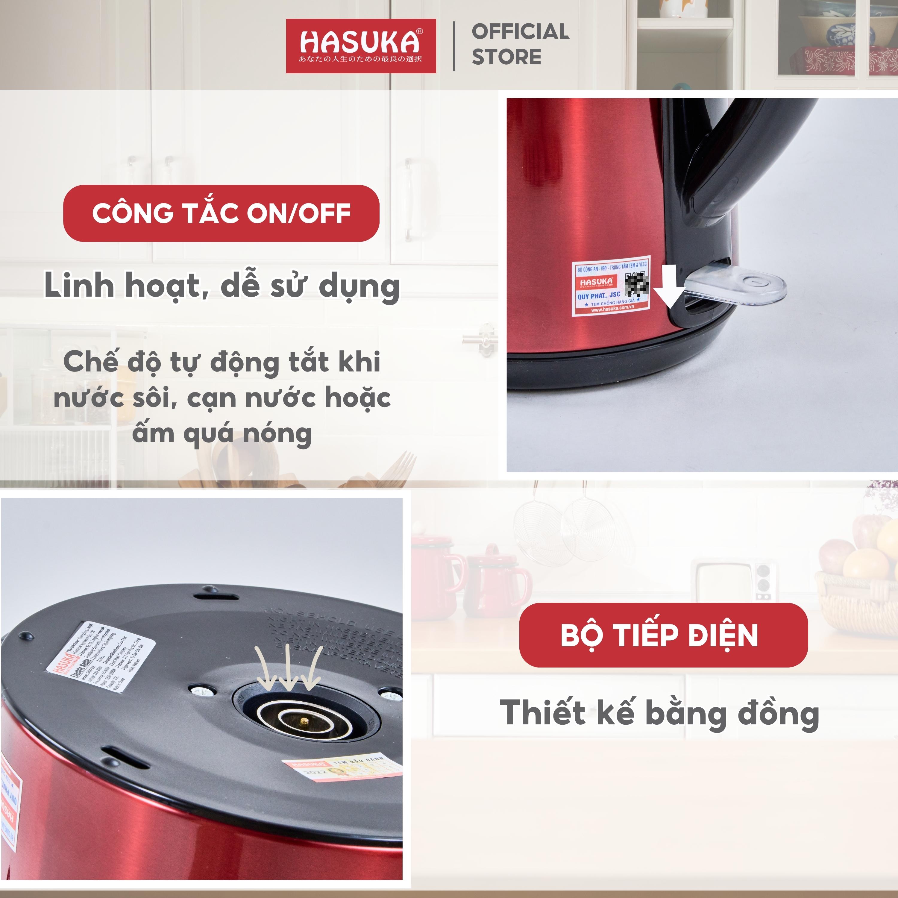 Dung tích: 1.7L Công suất: 1800W Ưu điểm nổi bật: 2 lớp cách nhiệt: Thép không gỉ bên trong, nhựa mát tay bên ngoài – an toàn tuyệt đối, nhất là với gia đình có