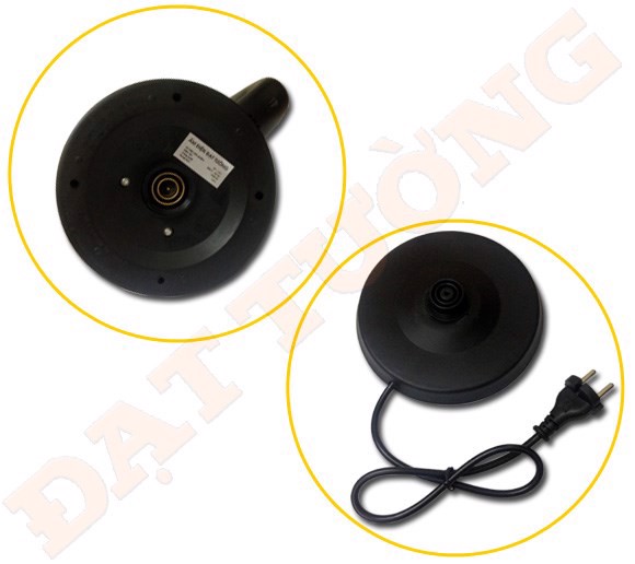 - Đế tiếp điện được làm bằng nhựa cao cấp, có chức năng kết nối nguồn điện với thân ấm. Thiết kế thân bình tiếp xúc rời với đế bình nên bạn rất dễ dàng lau chùi, vệ sinh. Đế cấp điện rời an toàn, xoay được 360° quanh đế giúp bạn lấy và đặt bình vào đế tiện lợi đồng thời có đèn báo khi nước sôi.