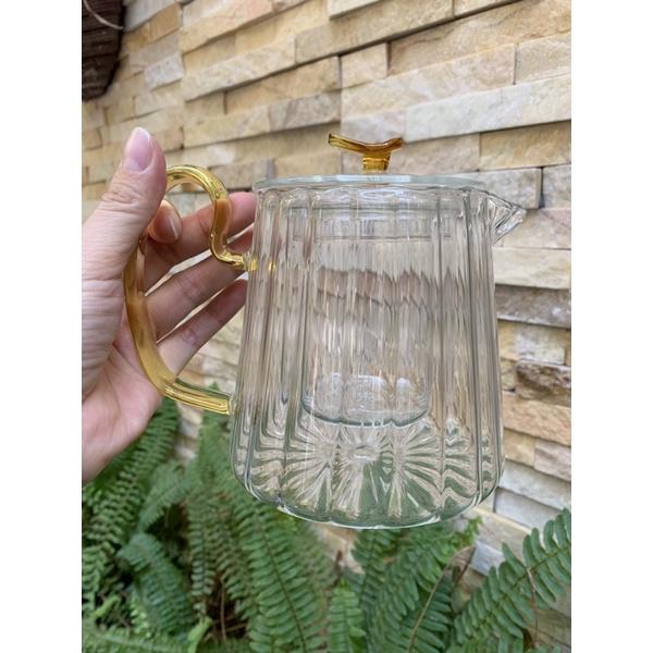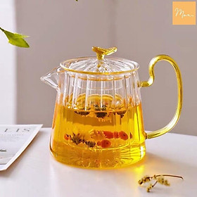 ✨Ấm thủy tinh pha trà hoa chịu nhiệt kèm lõi lọc sọc quai vàng