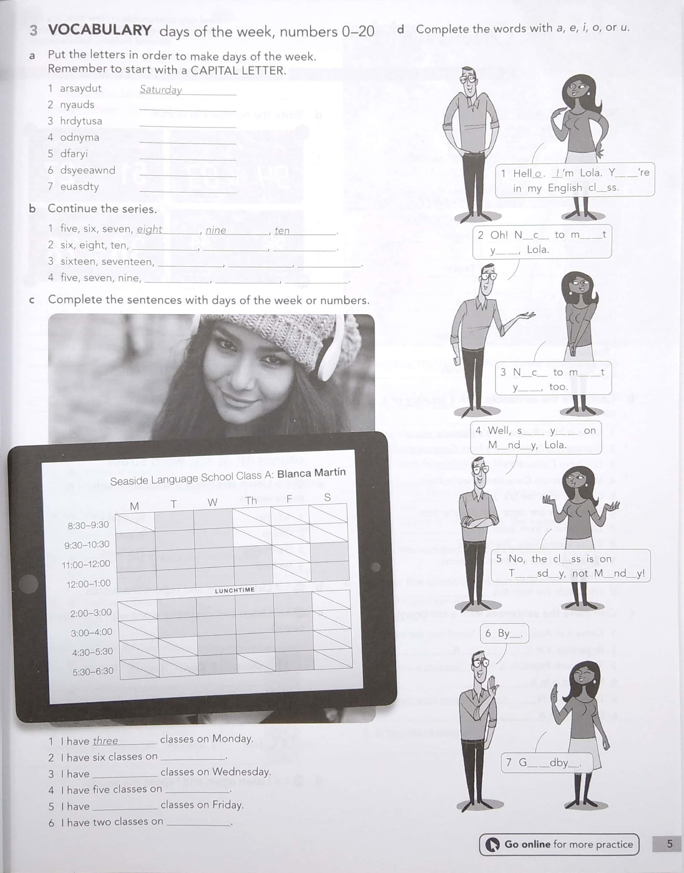 Workbook 1A | Verb Be +, Subject Pronouns, Days, Numbers, Vowel Sounds – AEF 3rd Ed. Book 1