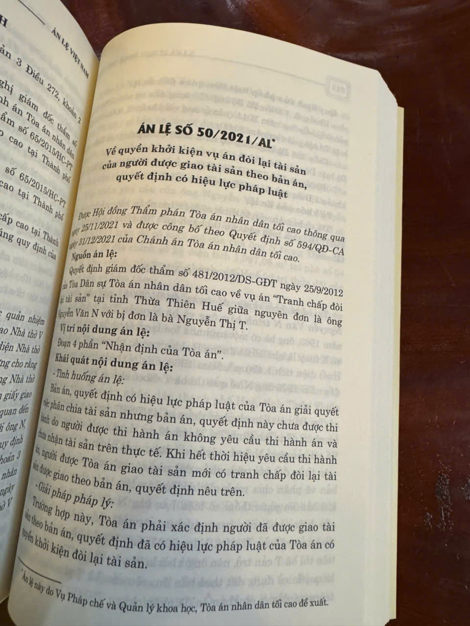 Cuốn sách là tài liệu quý trong việc tìm hiểu, nghiên cứu và viện dẫn án lệ cho các Thẩm phán, Hội thẩm và các chức danh tư pháp của Tòa án, cũng như bạn đọc quan tâm đến vấn đề này.