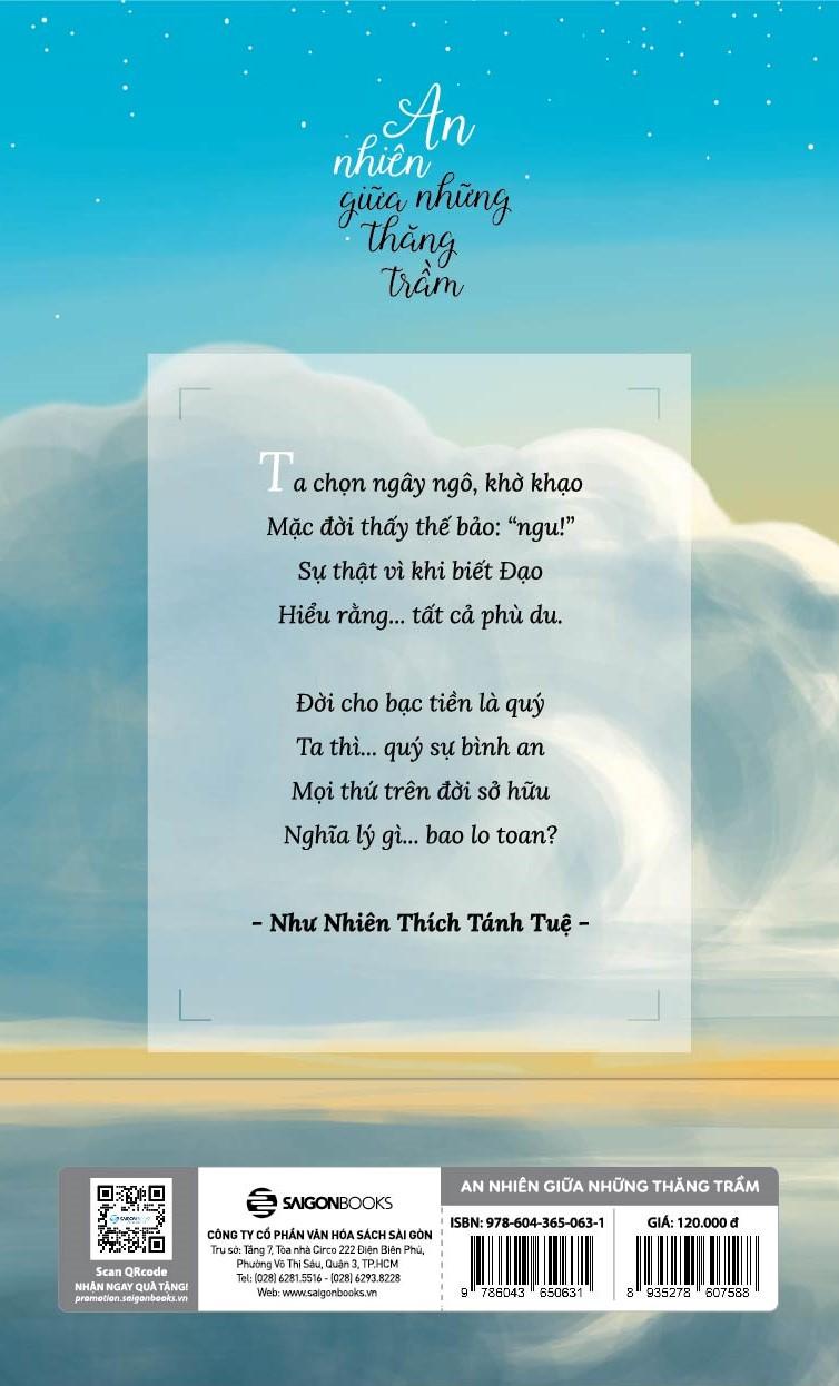 Thật hoan hỷ khi giữa cuộc đời chênh vênh, huyên náo này có một tâm hồn thiền vị, sống chan hòa vì đời vì đạo, miệt mài chuyên chở những tặng phẩm yêu thương giúp chuyển hóa nỗi khổ niềm đau của nhân sinh. Thật may mắn cho tất cả những ai có đủ duyên cầm trên tay cuốn sách An nhiên giữa những thăng trầm này, bởi mỗi trang sách sẽ như ngọn đèn soi sáng lòng ta, giúp ta tự tìm thấy và nuôi dưỡng sự bình an đích thực, vĩnh cửu.
