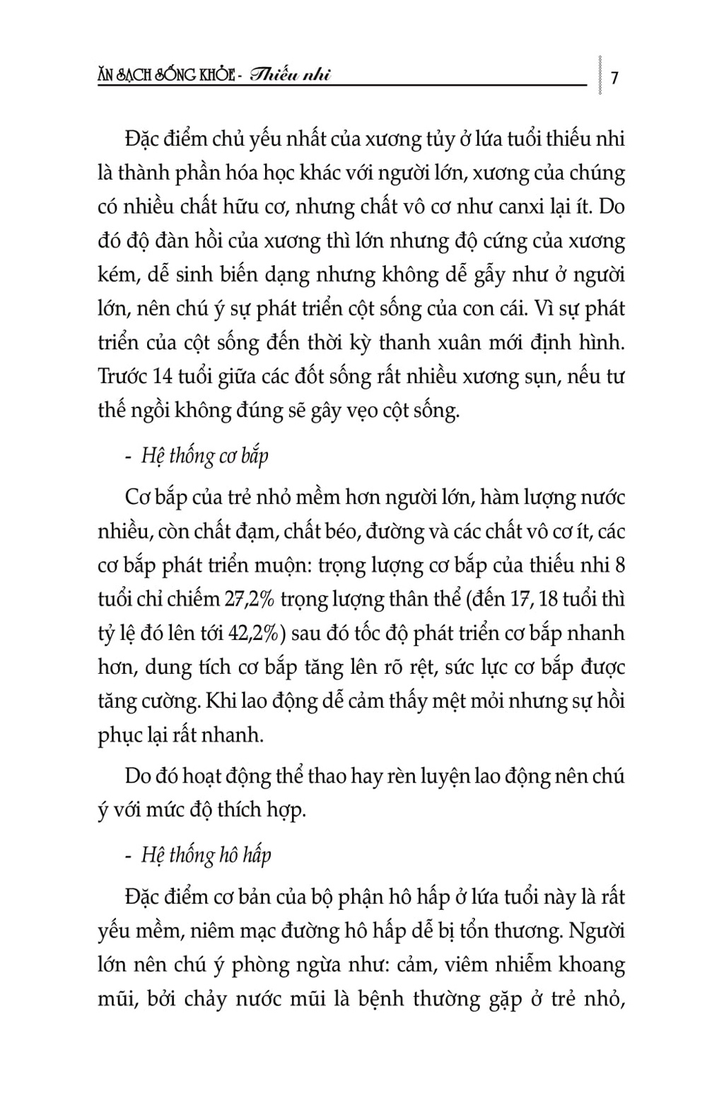Sách trình bày đặc điểm sinh lý của các thời kỳ của lứa tuổi thiếu nhi từ 1 tuổi đến 12 tuổi, đặc điểm phát triển các hệ thống của thiếu nhi, 5 tố chất