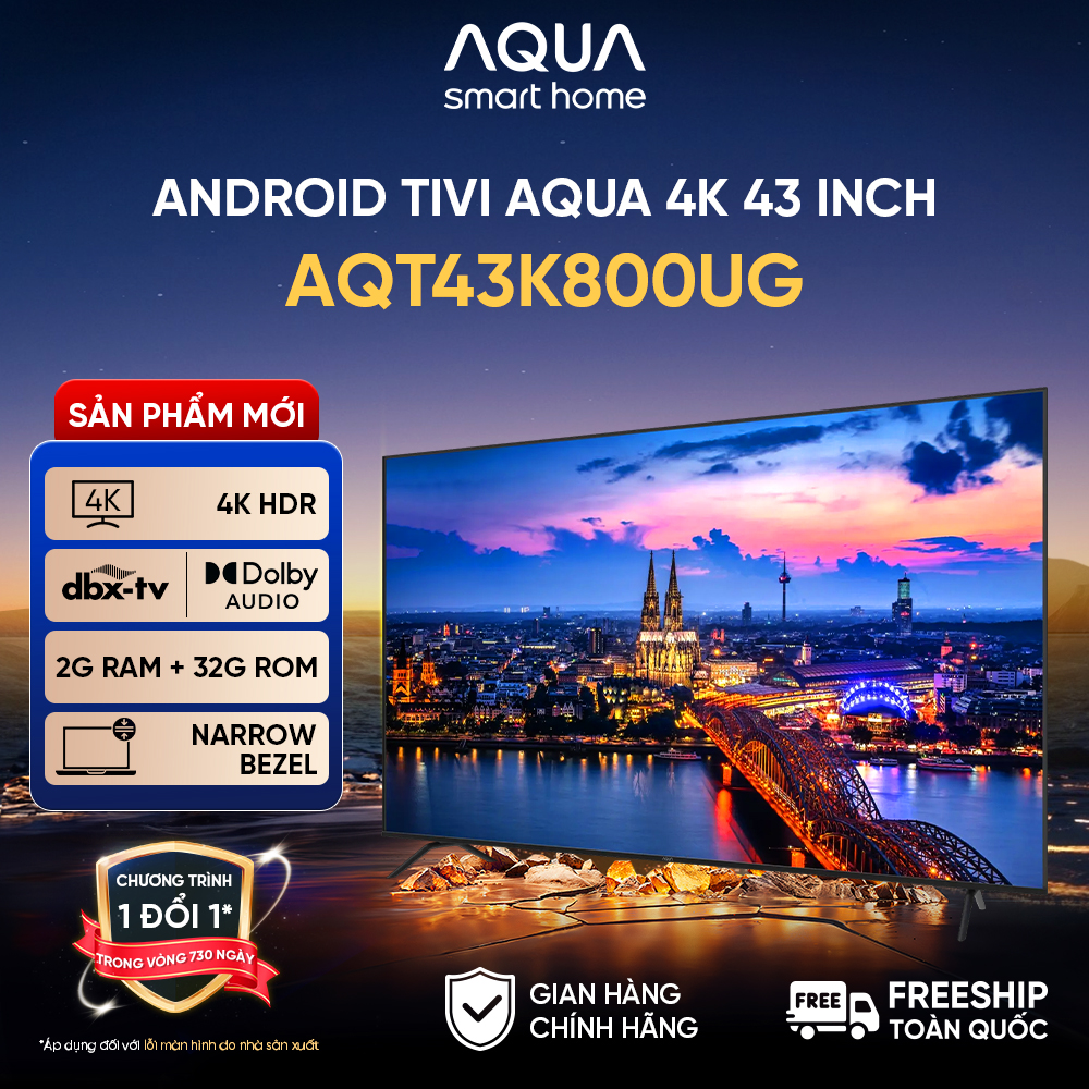 ✨Android Tivi Aqua 43 inch AQT43K800UG - Hàng chính hãng - Bảo hành 1 đổi 1 trong 730 ngày đối với lỗi màn hình