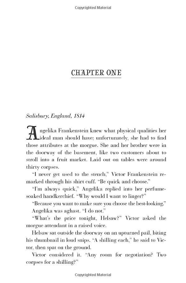 For generations, every Frankenstein has found their true love and equal, unlocking lifetimes of blissful wedded adventure. Clever, pretty (and odd) Angelika Frankenstein has run out of suitors and fears she may become the exception to this family rule. When assisting in her brother Victor’s ground-breaking experiment to bring a reassembled man back to life, she realizes that having an agreeable gentleman convalescing in the guest suite might be a chance to let a man get to know the real her. For the first time, Angelika embarks upon a project that is all her own.