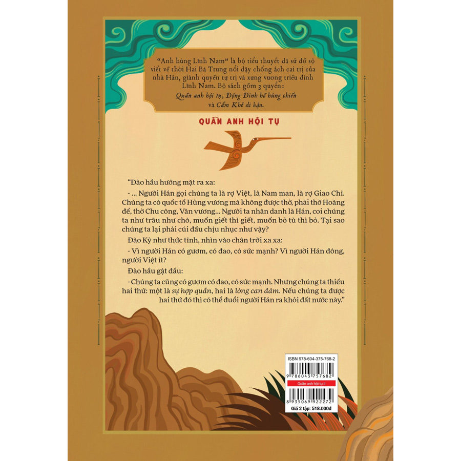 Quyển 3: Cẩm Khê di hận: Căm phẫn trước bộ mặt tráo trở của vua Hán là Quang Vũ, trước sau chỉ che đậy dã tâm thôn tính lại đất chư hầu, phe quần hùng Lĩnh Nam buộc phải chọn lựa liên minh với quân Thục, quyết nuôi chí lớn giành quyền tự trị cho Lĩnh Nam. Trên hành trình quy tụ anh hùng các môn phái tại Động Đình hồ nhằm đề cử tân Lĩnh Nam vương, phía các anh hùng Đào Kỳ, Phương Dung, Lục Sún vướng phải nhiều mưu đồ hiểm ác của tay sai Mã thái hậu cùng nội gián của Quang Vũ cài vào dọc đường. Cùng lúc đó, tên phản đồ Lê Đạo Sinh ra sức gây nhũng nhiễu quân binh tại các thành trì, hòng diệt trừ từng phòng tuyến vững chắc nhất phía Lĩnh Nam. Giữa thế nội công ngoại kích đó, Đặng Thi Sách tử trận trước mũi kiếm kẻ thù, buộc Trưng Trắc ghìm hận xưng quân, đánh thắng Mã Viện, lập nên triều đình Lĩnh Nam, mở đầu hào khí chống Bắc thuộc. Cẩm Khê di hận là khúc diễn ca về hùng binh của Hai Bà Trưng còn vang mãi trong lịch sử dân tộc Việt. Nhà xuất bản Phụ nữ VN trân trọng giới thiệu cùng bạn đọc.