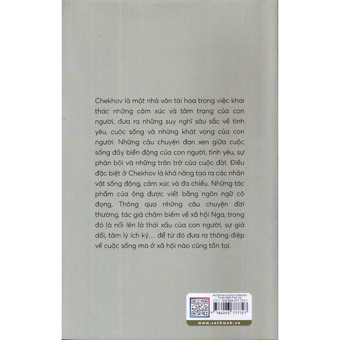 Về mặt nghệ thuật, truyện ngắn của Chekhov có chiều sâu tâm lý, lột tả rất xác thực tình tiết nội tâm đặc trưng của các tầng lớp người Nga thế kỷ thứ 19 nhất là thành phần thị dân nước Nga, nên có thể nói Chekhov là nhà văn của lớp thành thị Nga. Ngôn ngữ truyện ngắn của Chekhov tinh tế, đã nâng tiếng Nga lên tầm hiện đại và làm giàu rất nhiều cho ngôn ngữ này.