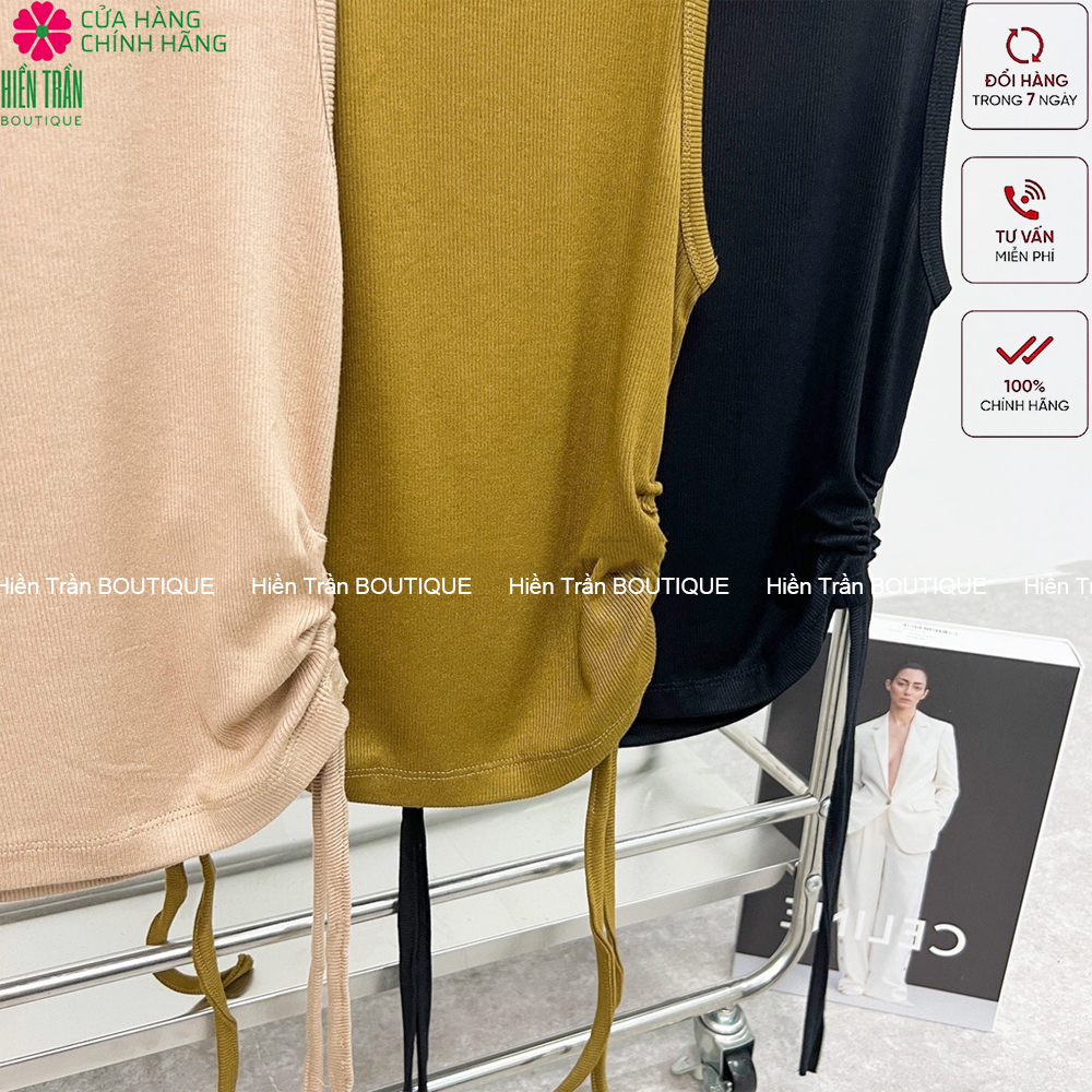 ✨Áo ba lỗ croptop nữ Hiền Trần BOUTIQUE sát nách kiểu dây rút hai bên không tay dáng ôm body tank top vải cotton co giãn tốt