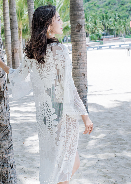 Khi diện những bộ bikini mà phối thêm chiếc áo choàng ren thì các nàng sẽ càng thêm sexy, trẻ trung, năng động và điệu đà lắm đó. Mẫu áo choàng ren với họa tiết