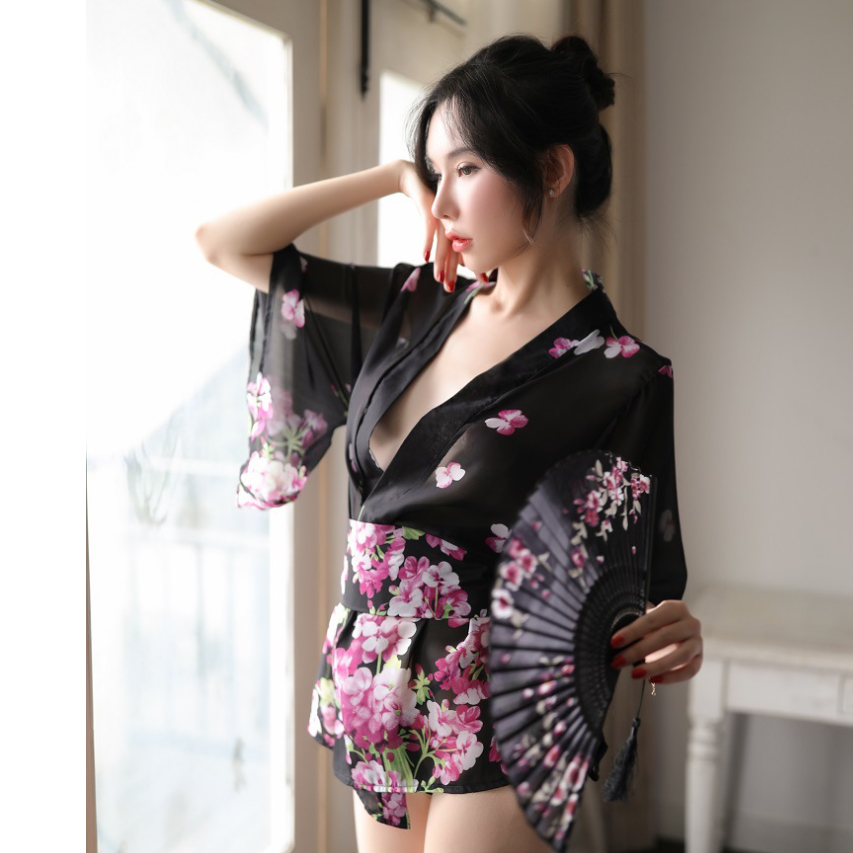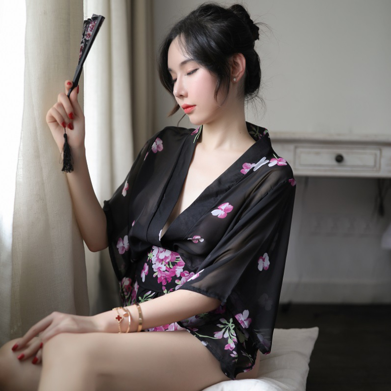 ✨Áo choàng tắm Pyjama voan hoa ngắn tay gợi cảm