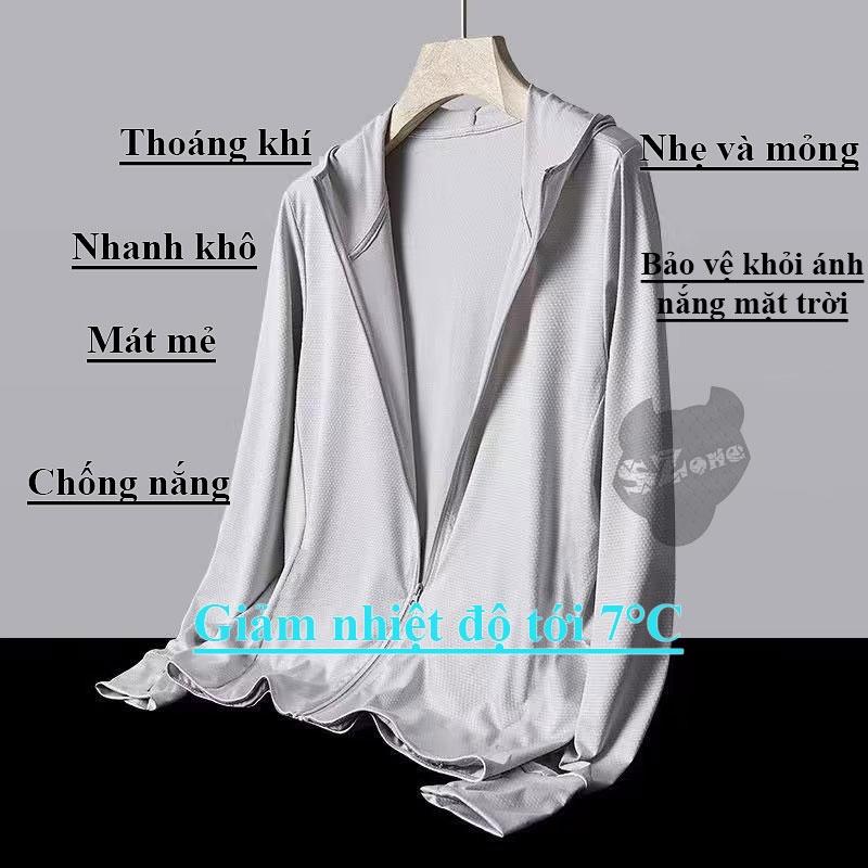 - Thông tin sản phẩm : Áo chống nắng nam,áo khoác đi nắng chất vải kim cương Với công nghệ sợi làm mát , giúp người mặc có cảm giác dễ chịu dưới ánh nắng gay gắt của ngày hè. Tay áo vát dài che hết mu bàn tay. Áo có mũ che kín đầu. Bên trong là lớp cách nhiệt lỗ kim thoáng khí và làm mát. Đạt chuẩn chỉ số chống nắng