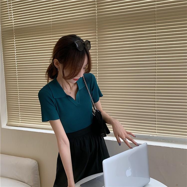 Áo croptop dệt kim tay ngắn cổ polo thời trang Hàn Quốc thanh lịch