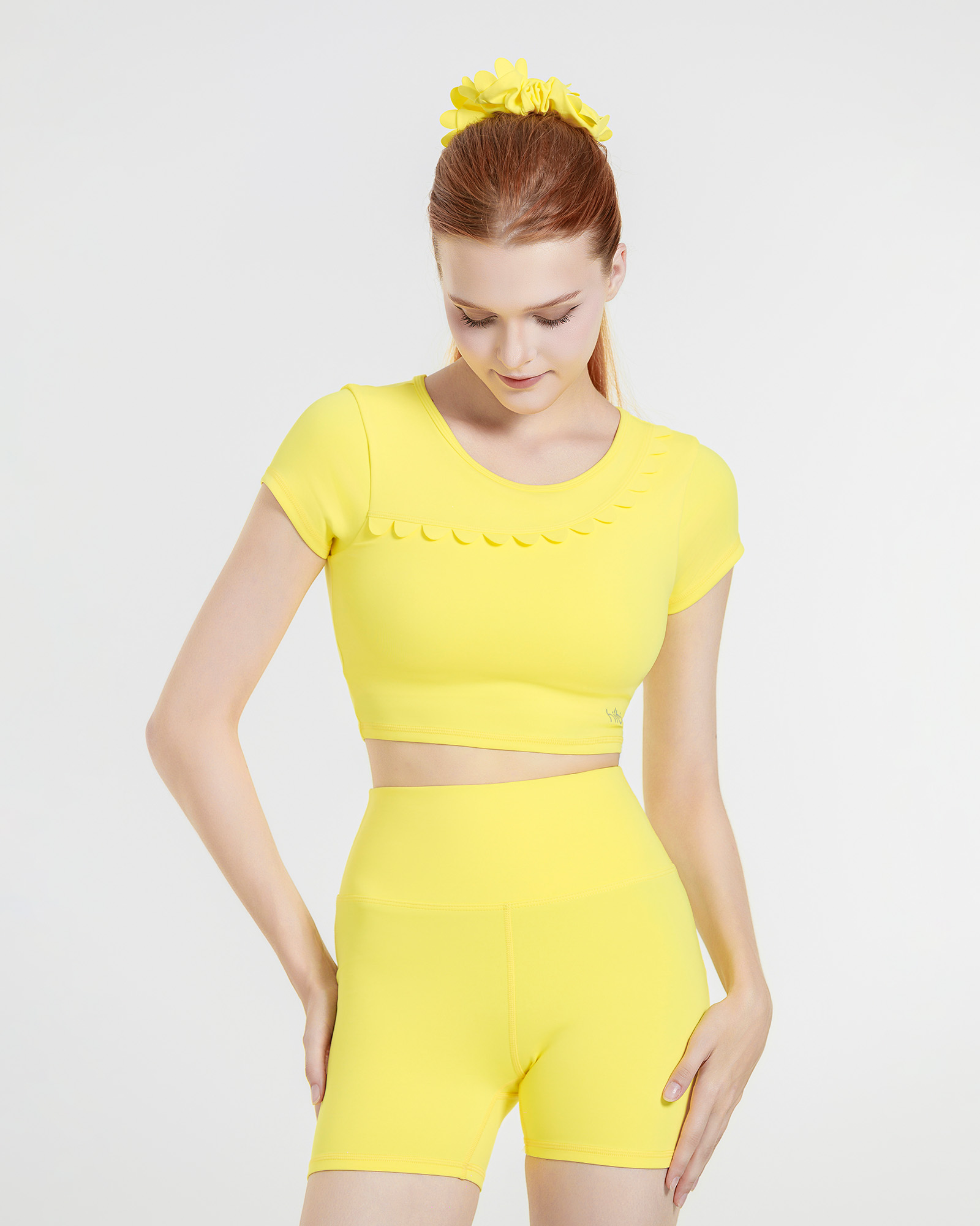 Áo Tập thể thao phong cách croptop năng động, trẻ trung Màu sắc: Vàng, Xanh, Hồng, Tím nhạt Size S (dưới 48kg)__Size M(49 ~ 54kg)__Size L (55 ~ 58kg)__Size XL (trên 58kg) Chất liệu vải