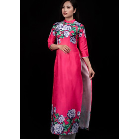 Thiết kế Áo dài nữ hồng vàng họa tiết hoa hồng cao cấp phong cách đường may tỉ mỉ. Áo thiết kế form vừa vặn giúp tôn được đường nét phong cách của các tính