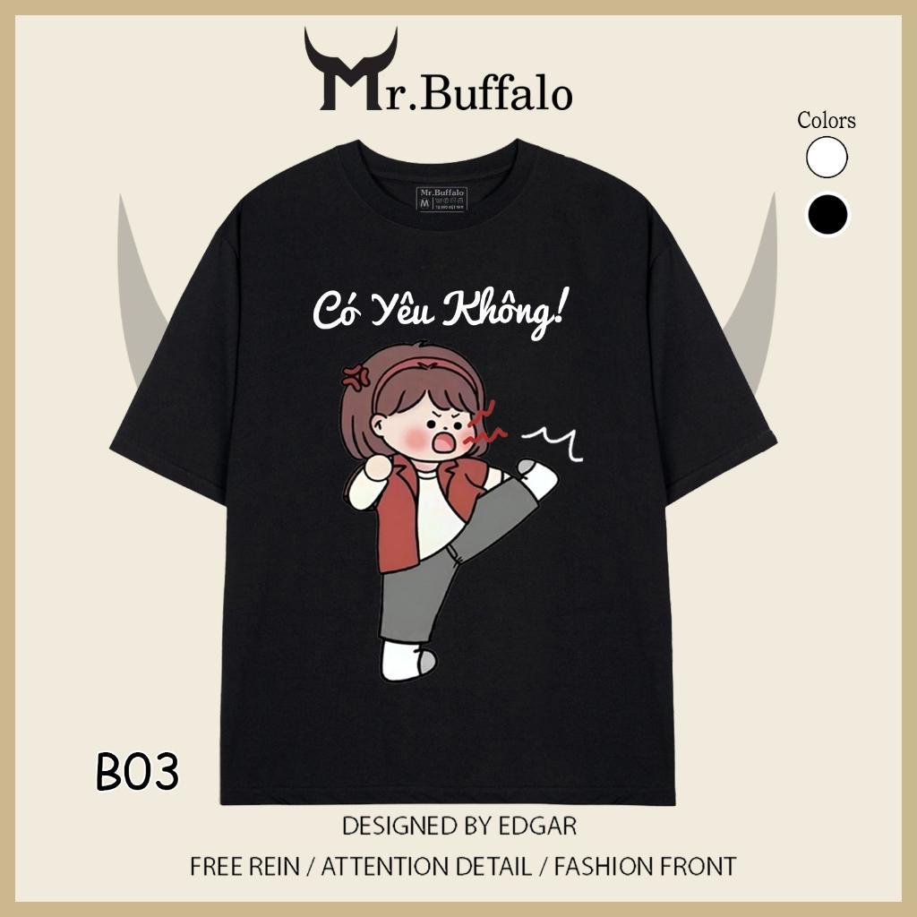 ✨Áo đôi , áo thun cặp nam nữ tay lỡ Unisex "có yêu không" form rộng vải cotton 100% B03B04 - Mr.Buffalo